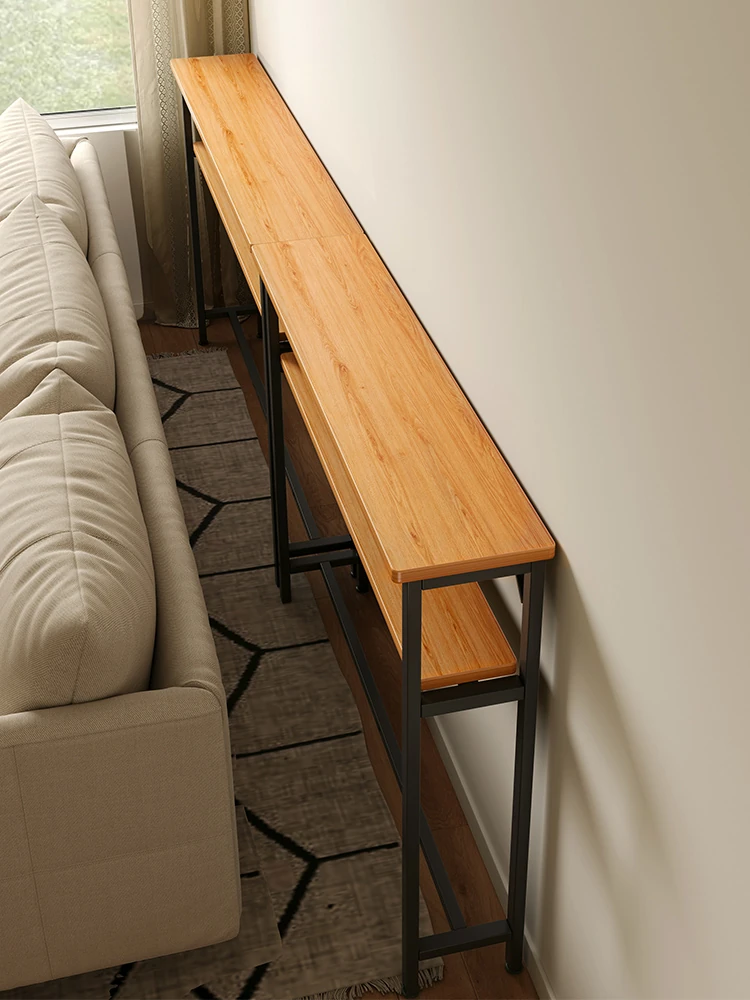 壁に寄せられるスリムなナローテーブル - ベッドサイドやソファの後ろにぴったり!限られたスペースを有効活用し、収納力アップ!おしゃれなデザインでインテリアにもマッチします。