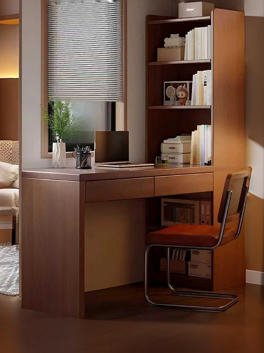 天然木材使用!省スペースの実木コーナーデスク&本棚一体型。学生や在宅ワークにも最適な書きやすさ。小さな部屋でも大活躍!おしゃれで機能的なデザインで、あなたの勉強や仕事をサポートします!