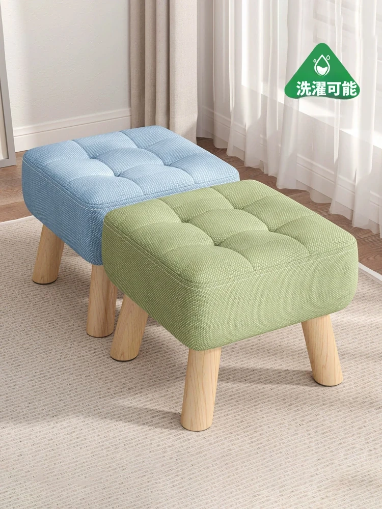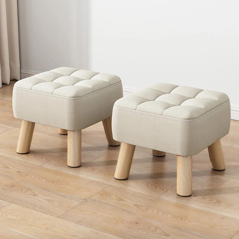 おしゃれなリビングにぴったり!シンプルな布製の低いスツール、ソファの足置きにも最適。柔らかいパッド入りで快適、丈夫な木製フレームの小型スツール。家庭での使い勝手抜群!