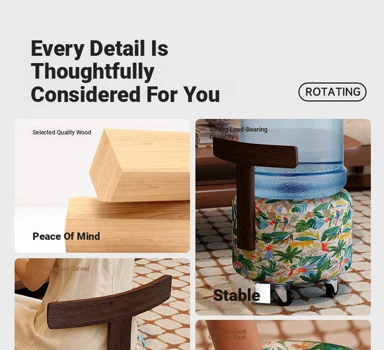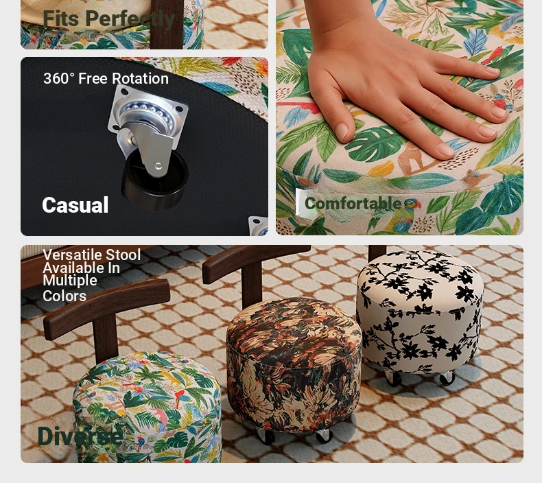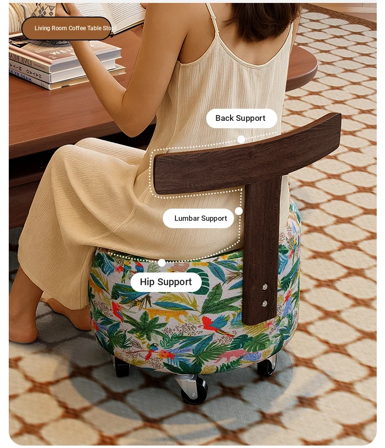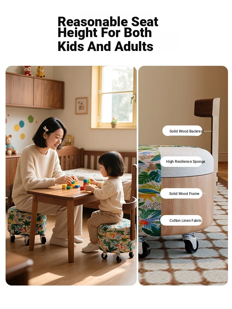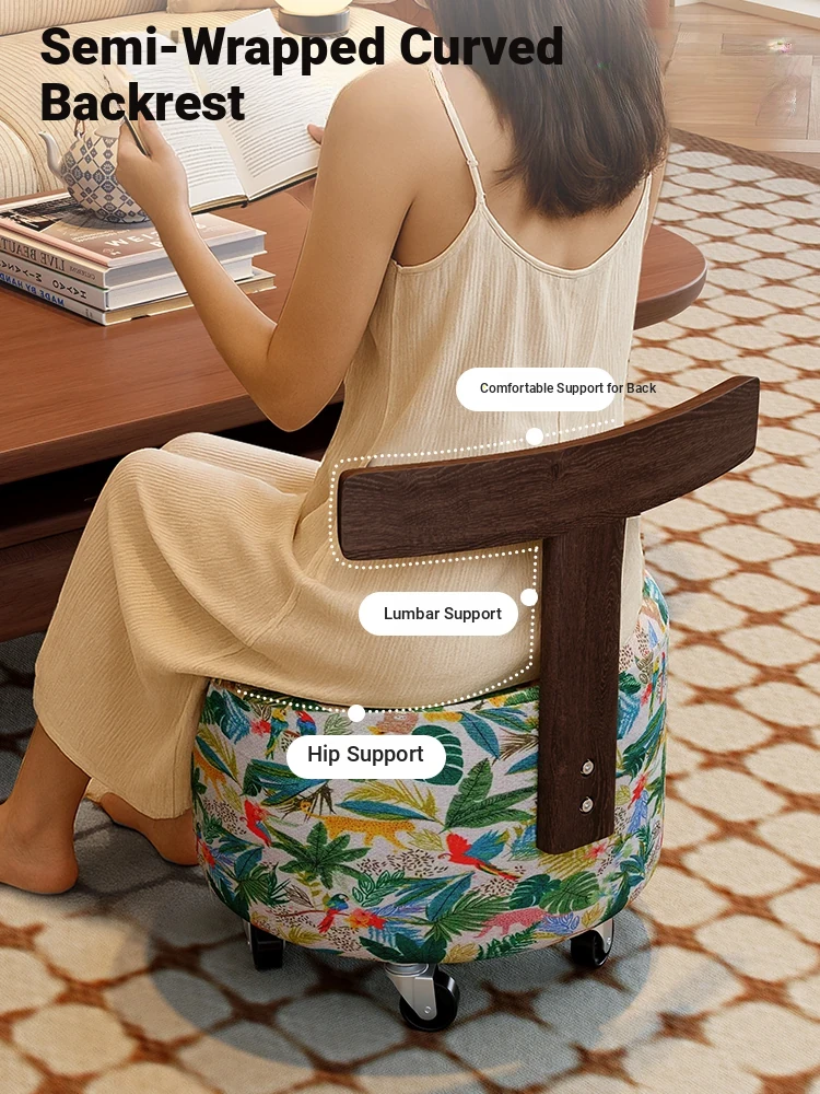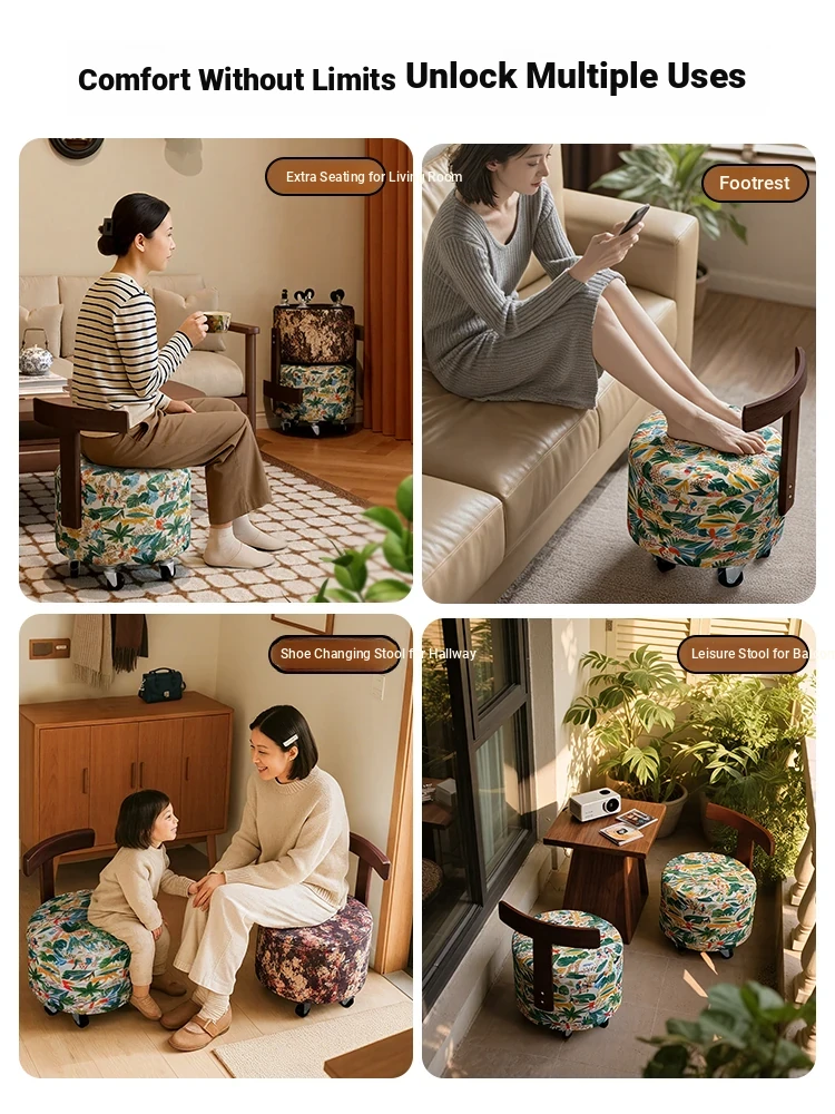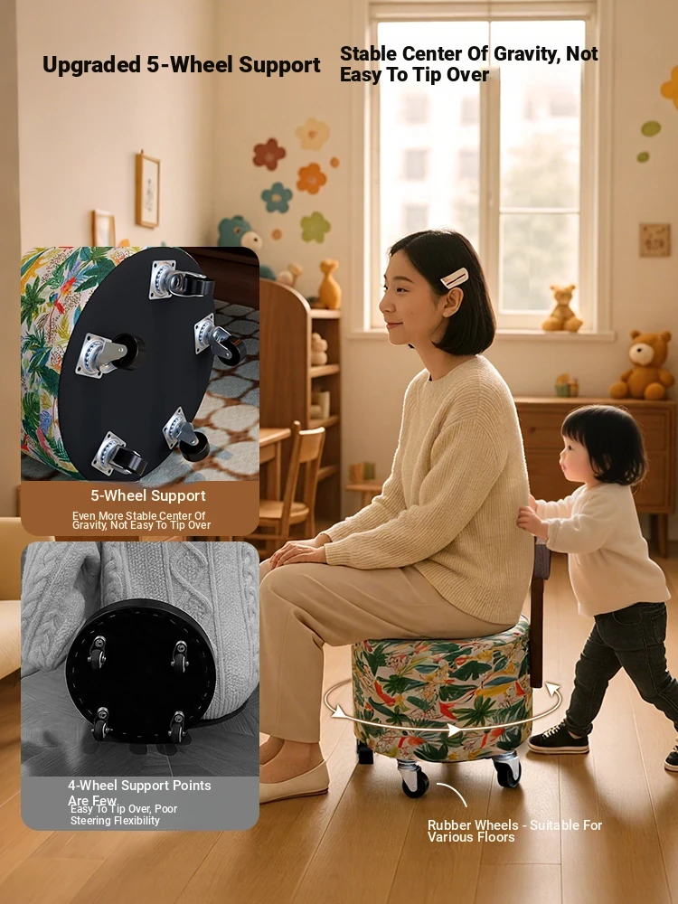 【New Upgraded Five-Wheel Model】Wizard of oz - Solid Wood Stool with Wheels