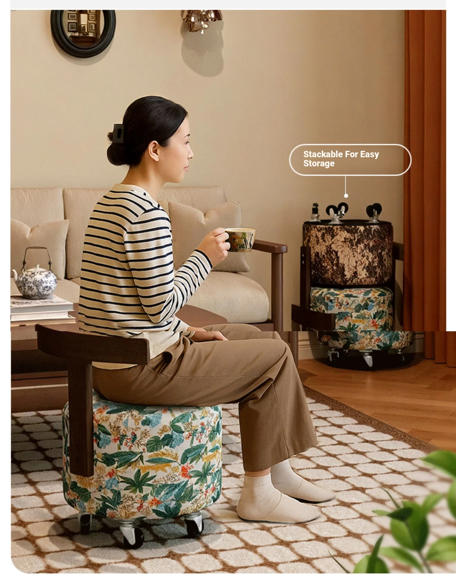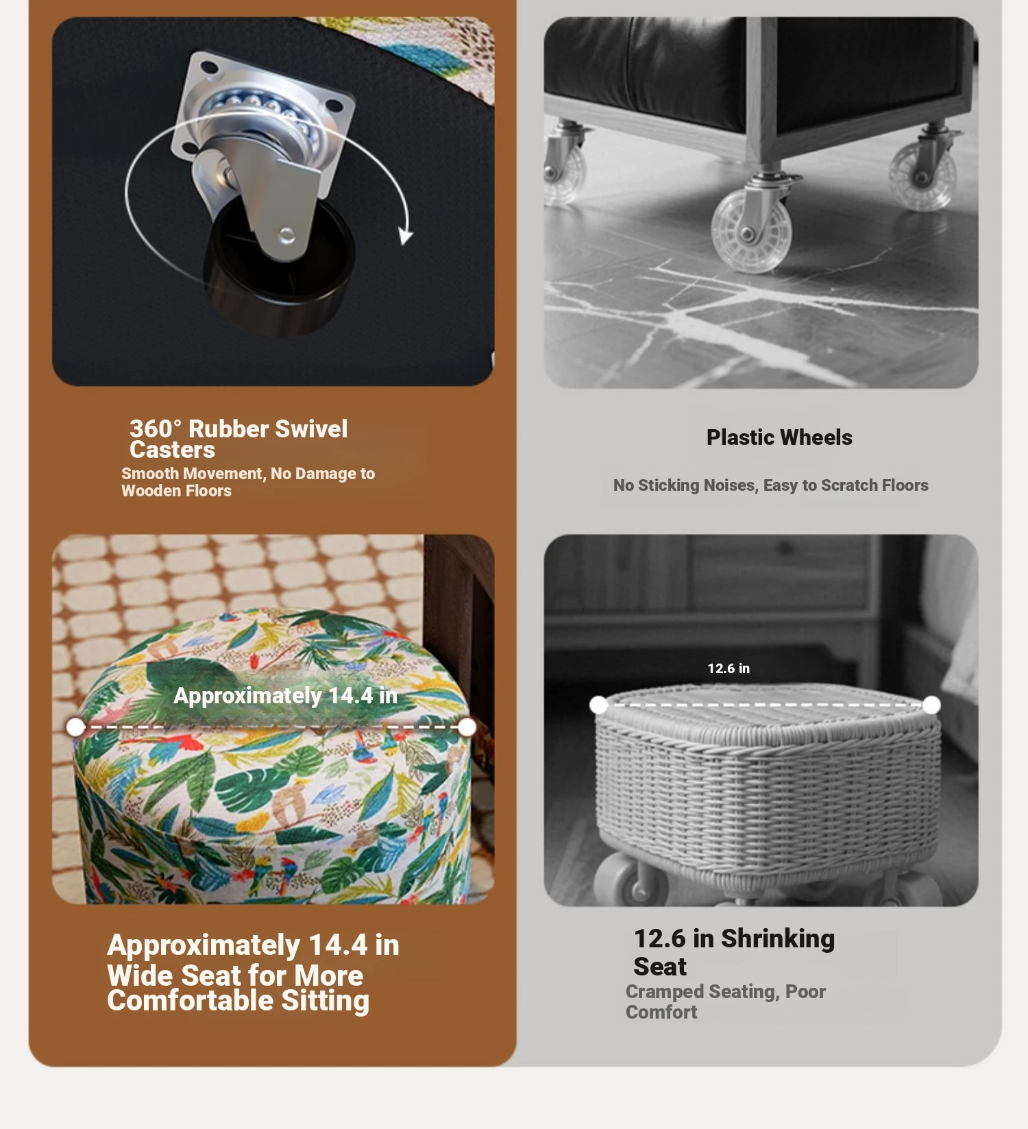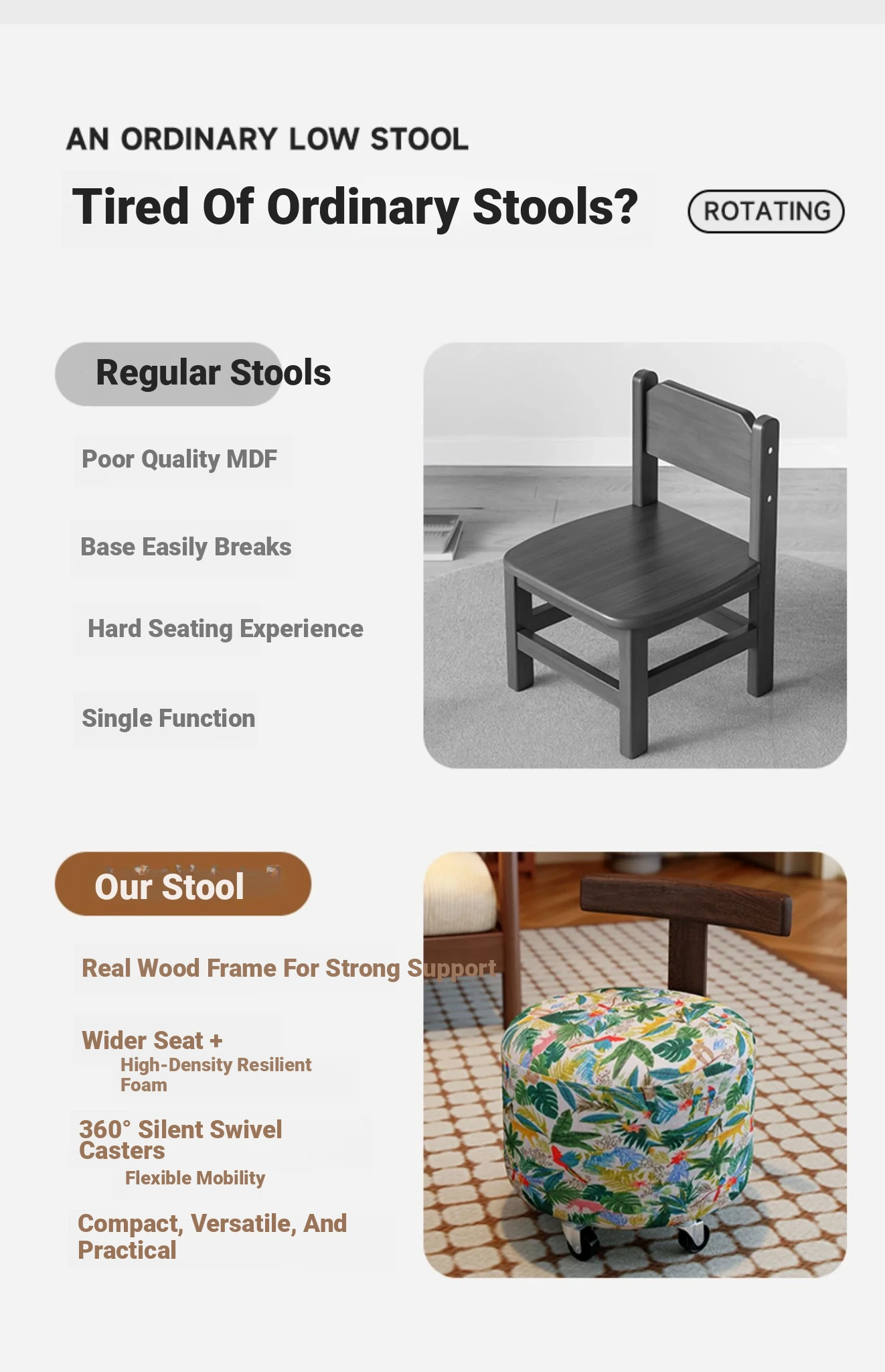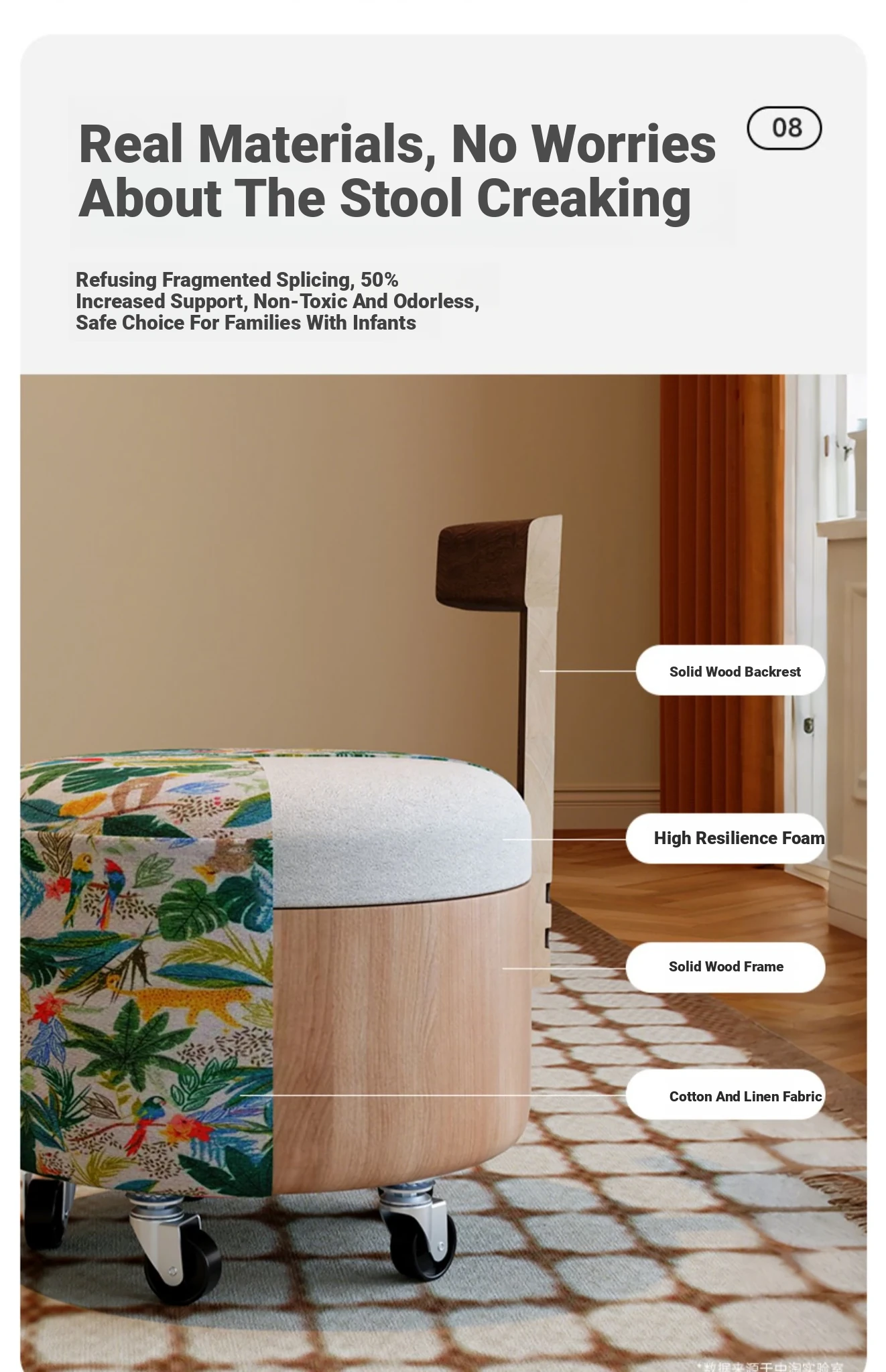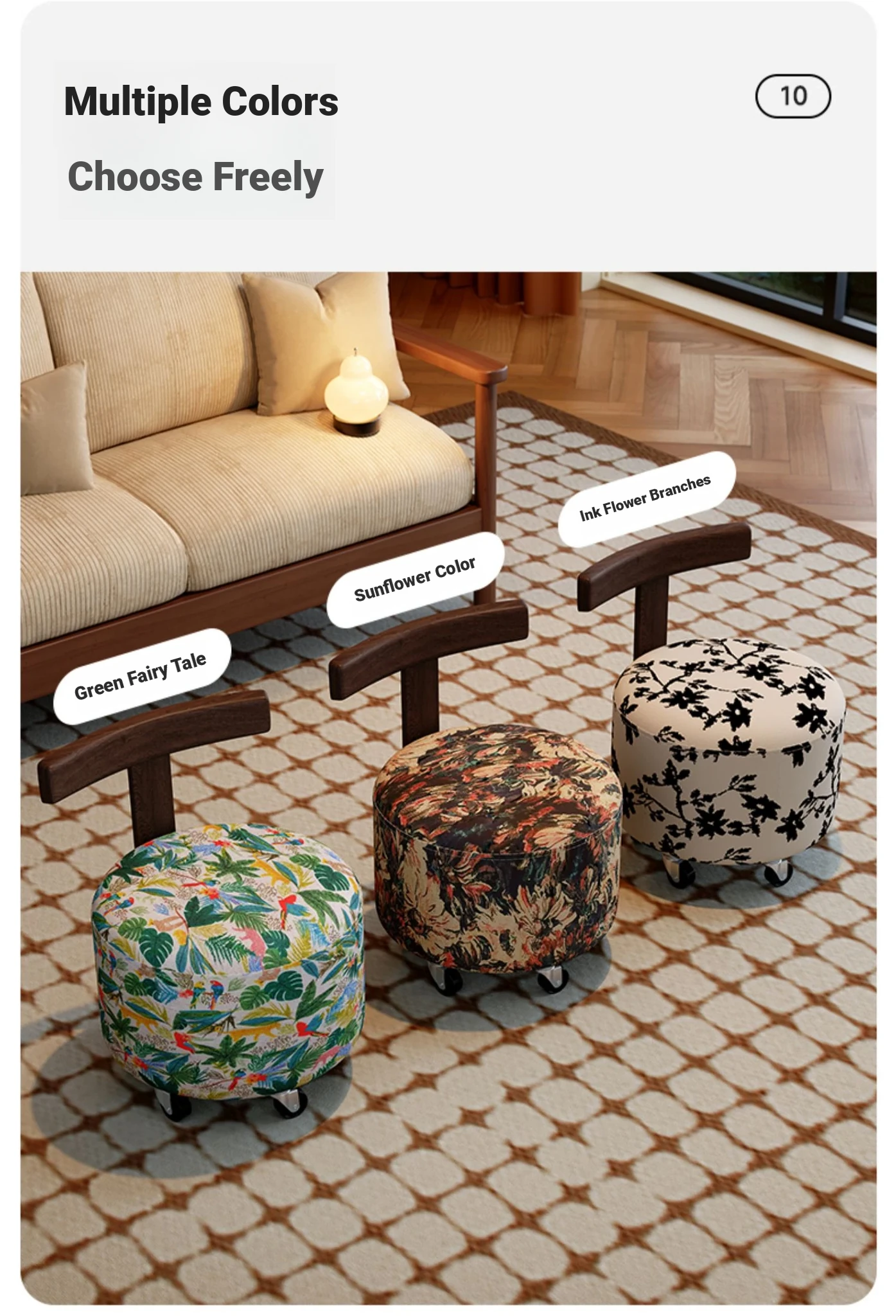 【New Upgraded Five-Wheel Model】Wizard of oz - Solid Wood Stool with Wheels
