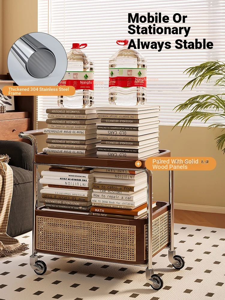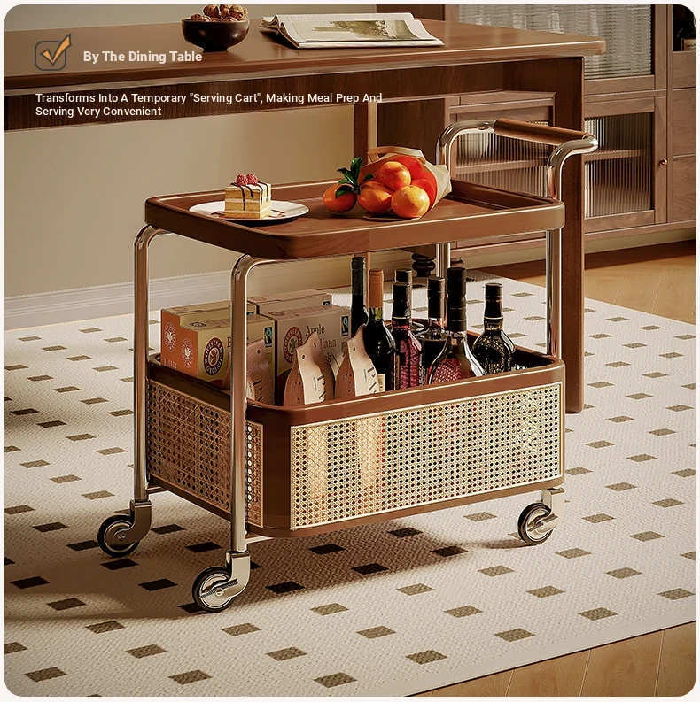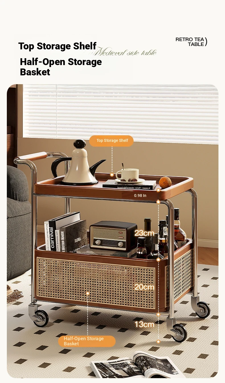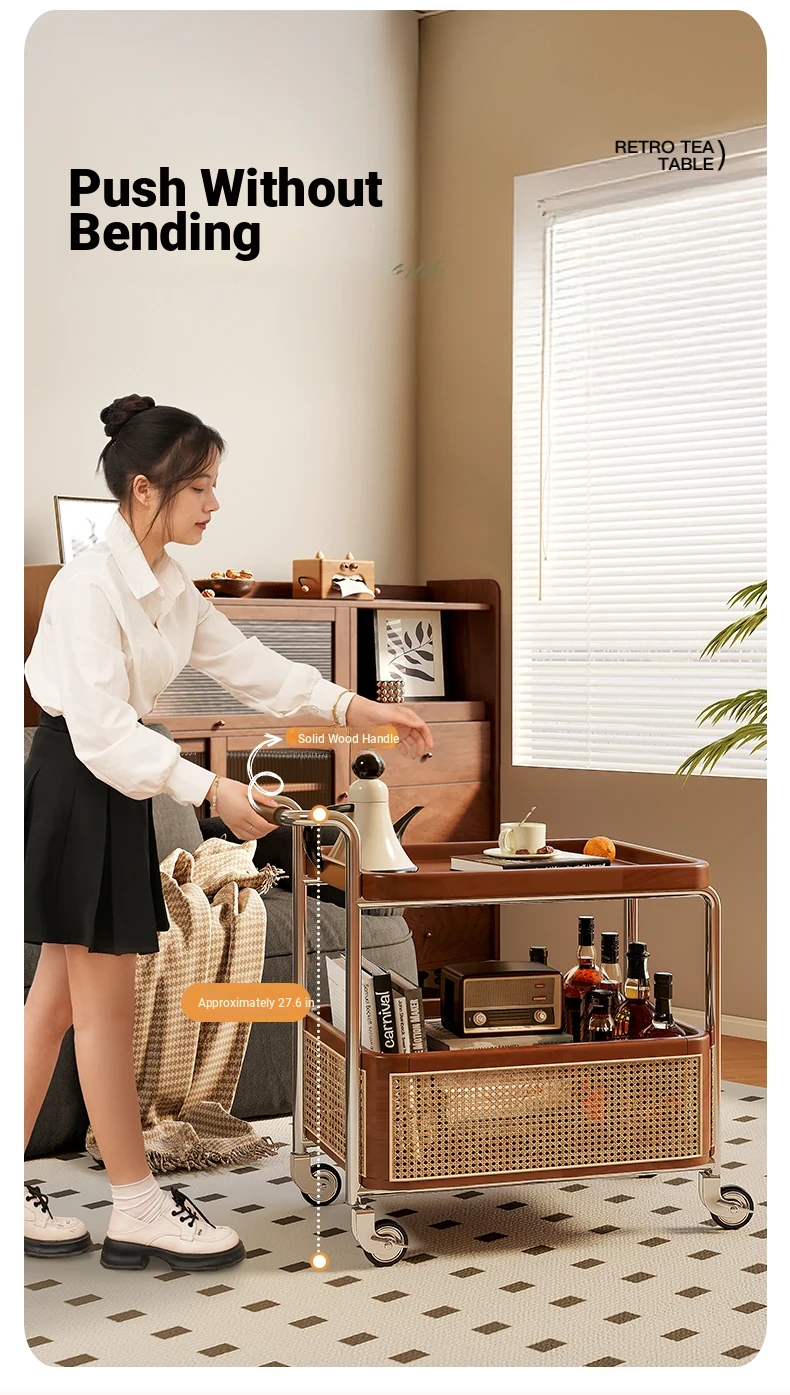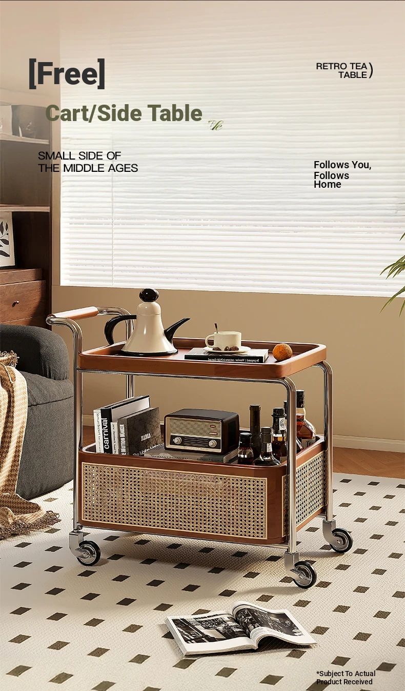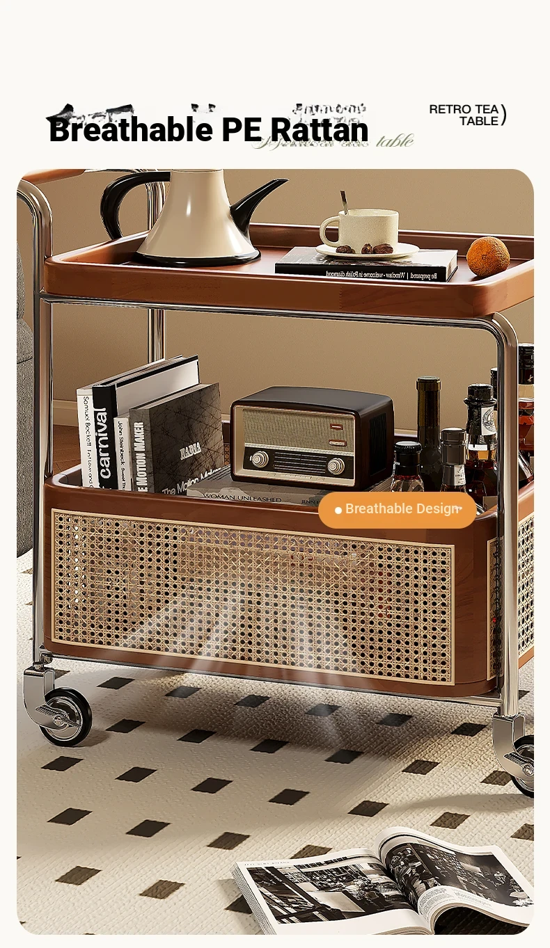 Vintage Solid Wood Mobile Cart - Stylish Sofa Side Table, Nightstand, and Dining Cart for Small Spaces in Living Room and Bedroom