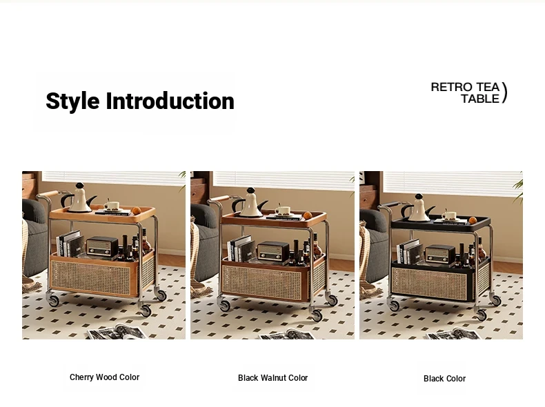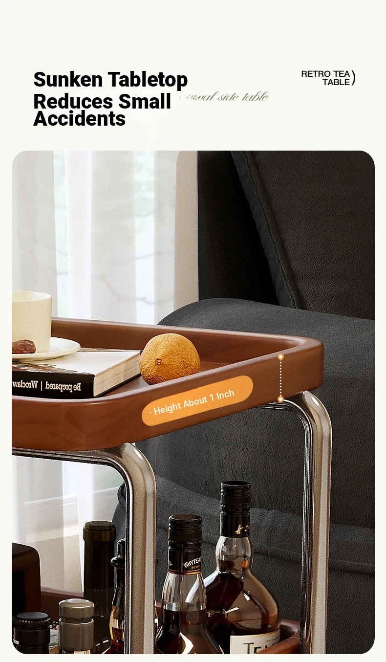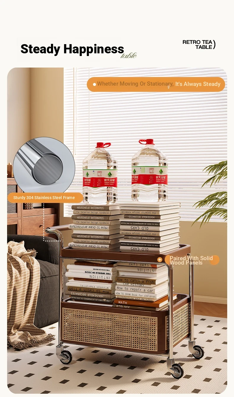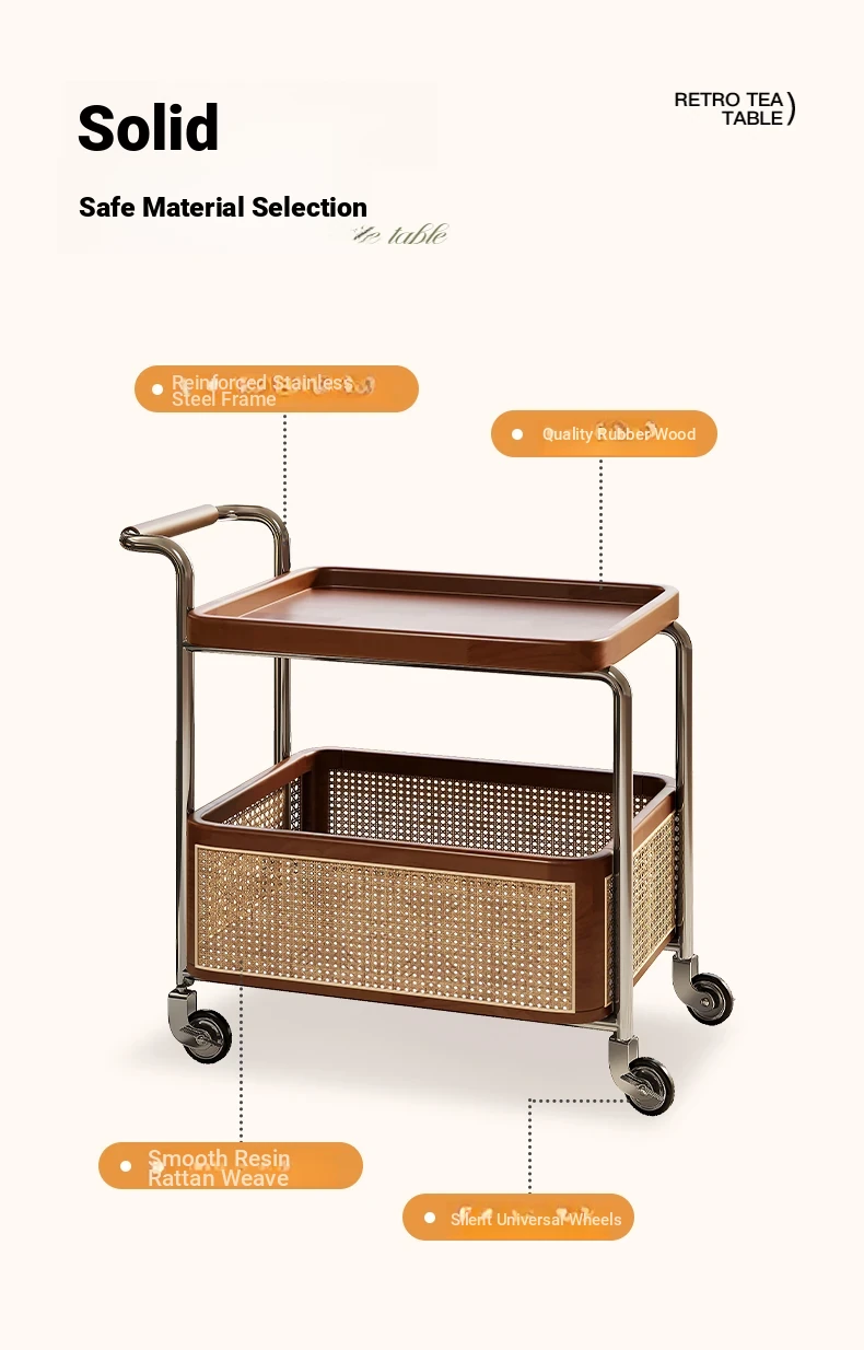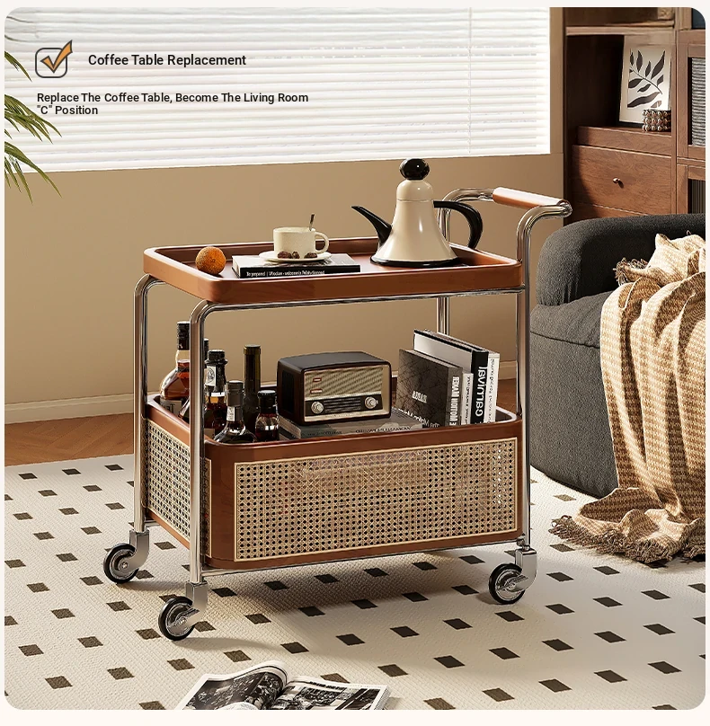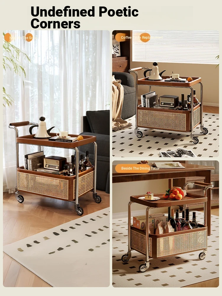 Vintage Solid Wood Mobile Cart - Stylish Sofa Side Table, Nightstand, and Dining Cart for Small Spaces in Living Room and Bedroom