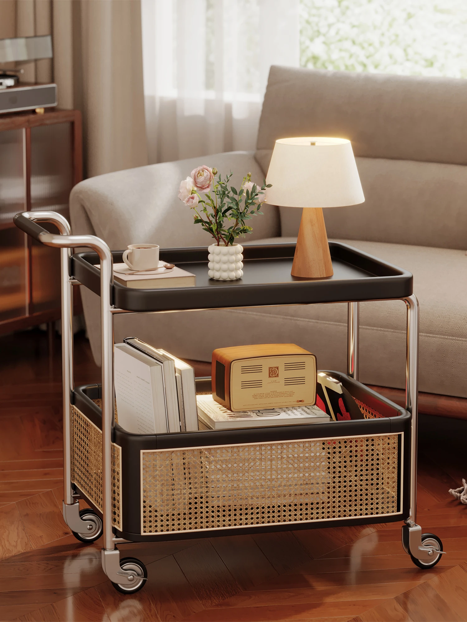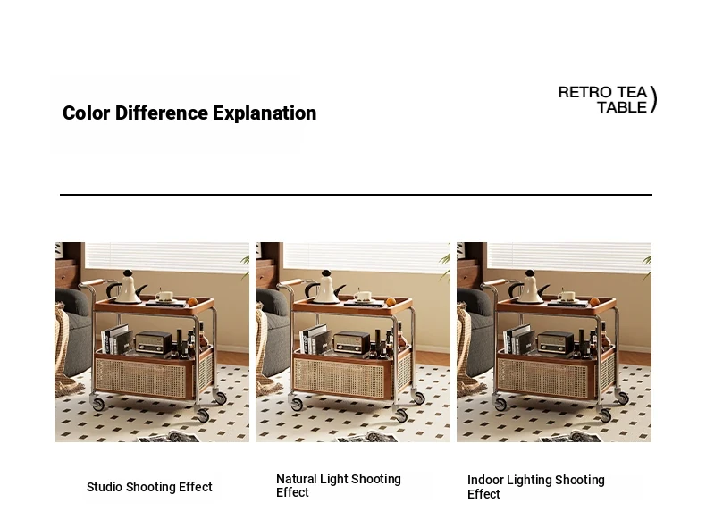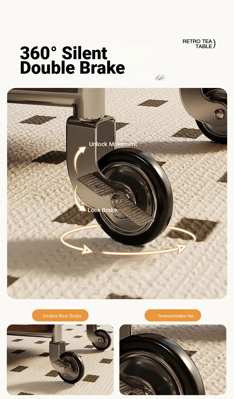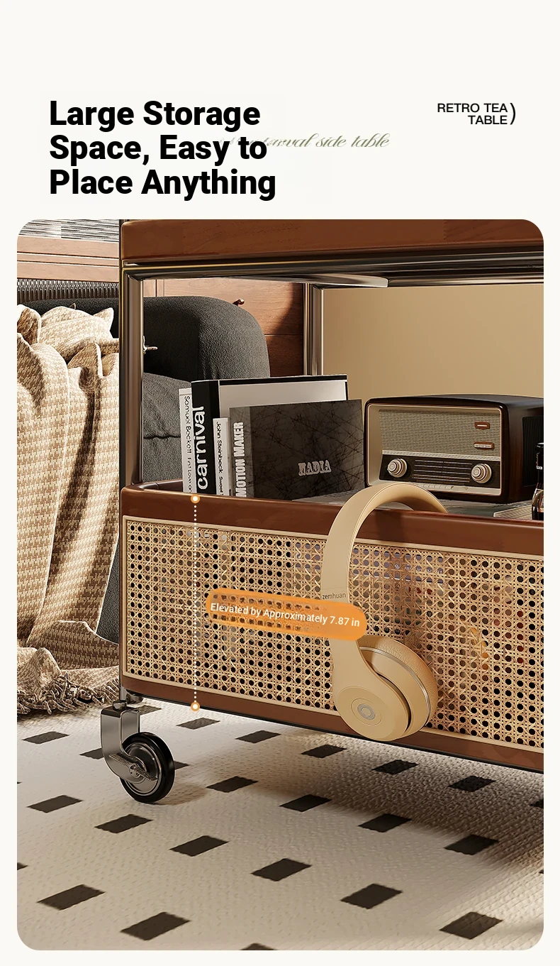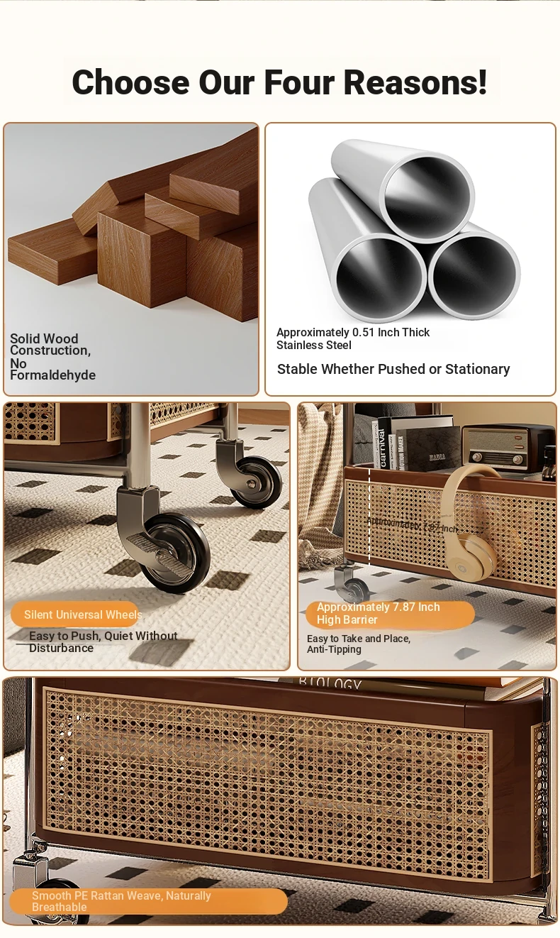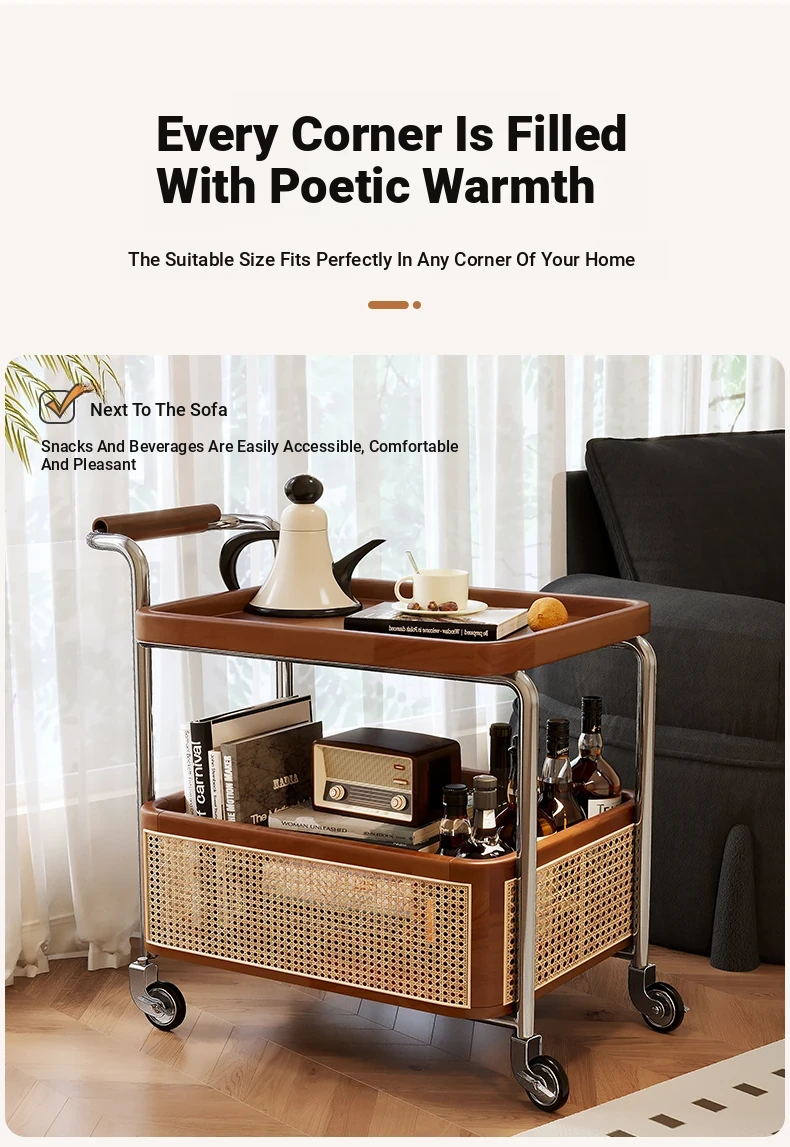 Vintage Solid Wood Mobile Cart - Stylish Sofa Side Table, Nightstand, and Dining Cart for Small Spaces in Living Room and Bedroom
