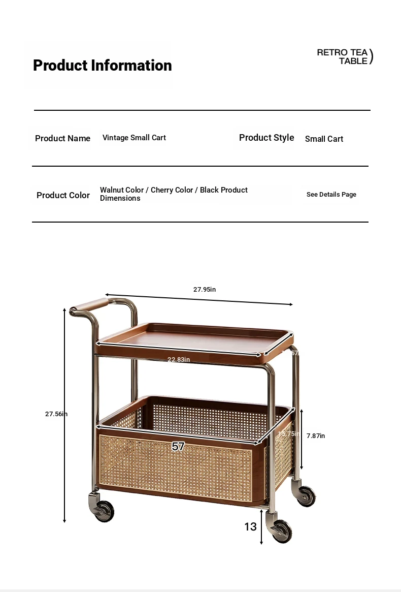 [Pure Solid Wood] [Fully Assembled] Cherry Wood Color Trolley (No Odor | No Formaldehyde)