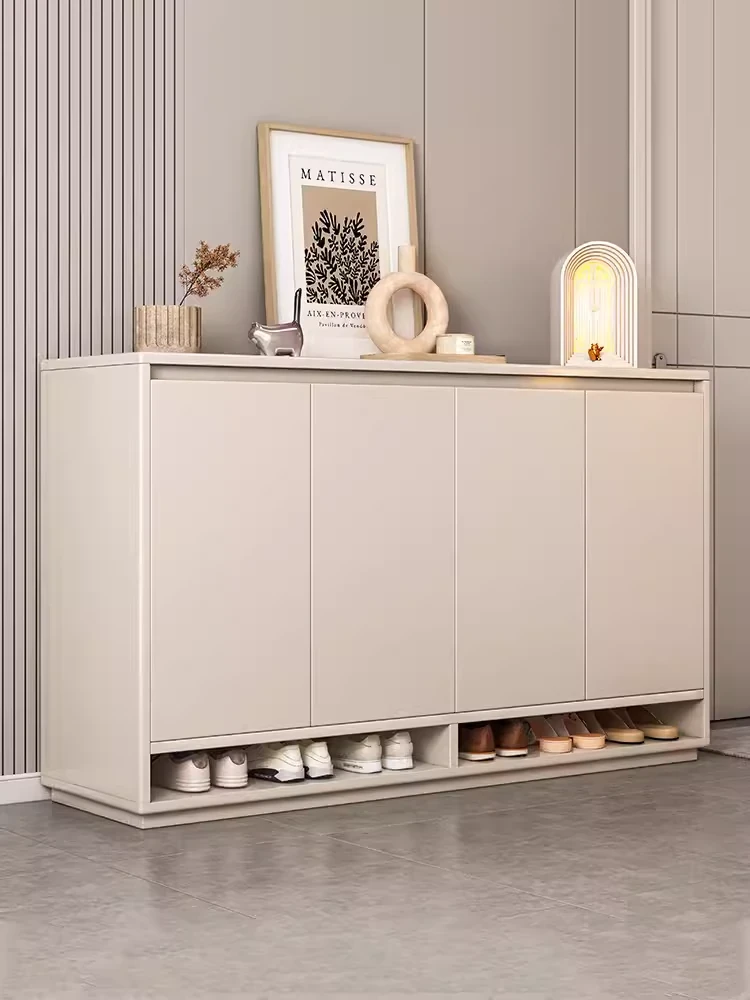2023 New Cream White Wall-Mounted Shoe Cabinet - Stylish & Functional Solid Wood Storage Rack for Entryway - Trending Design for Smart Organization