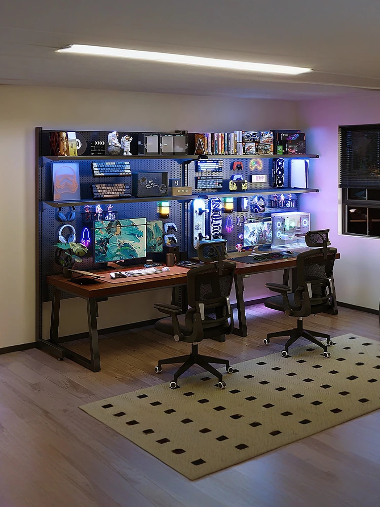 Multifunctional Standing Storage Rack with Hole Board Design - Versatile Desktop Organizer for Bedroom and Home, Multi-Layer Floor Shelving Unit, Ideal for Gaming Desks and Efficient Space Management.