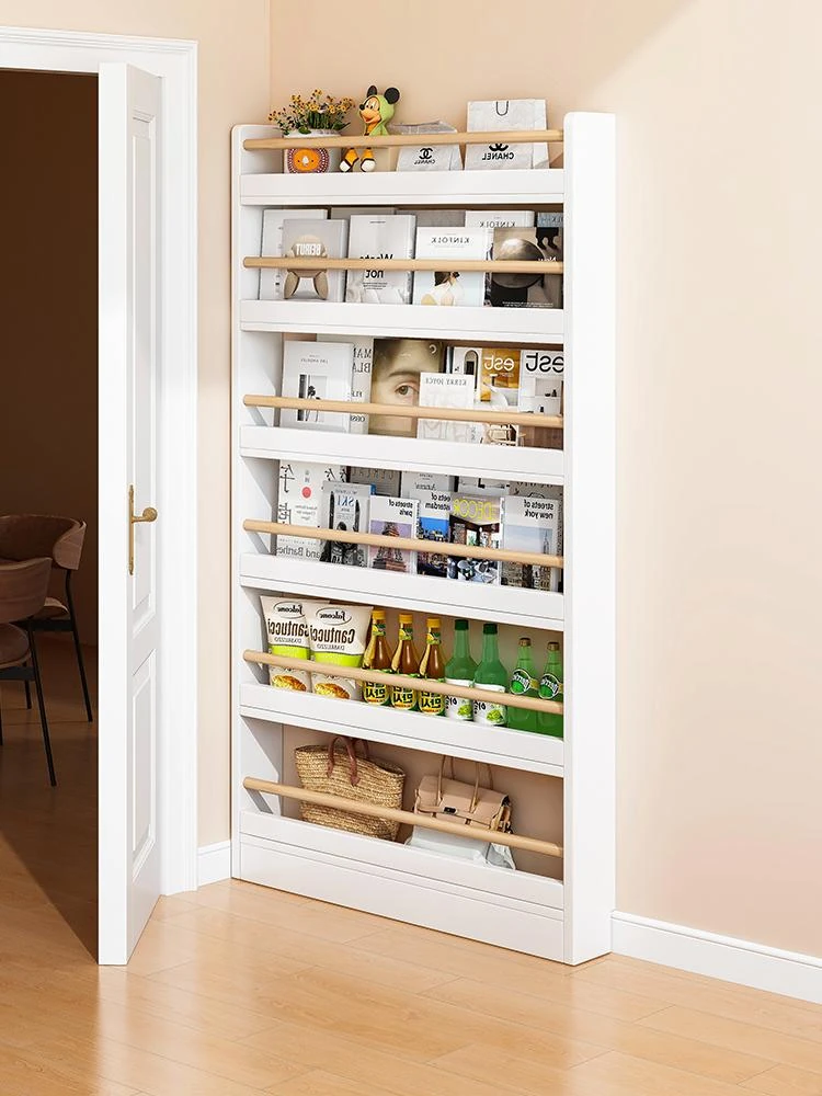 Slim Solid Wood Bookshelf - Space-Saving Floor-to-Wall Storage Unit for Home, Perfect for Narrow Hallways and Gaps, Ideal for Display and Organization