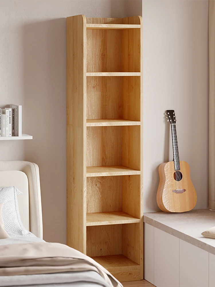 Stylish Solid Wood Bookshelf - Multifunctional Floor Storage Cabinet for Home, Bedroom, and Narrow Spaces - Perfect for Organizing Books and Decor by the Bed or Window