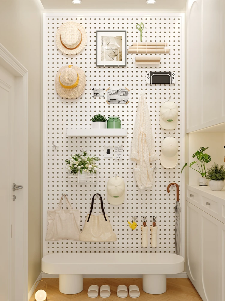 Creamy Hollow Wall-Mounted Shelf - Stylish Entryway Storage Solution with Stainless Steel Tool Organizer, Versatile Pegboard for Home Décor and Efficient Wall Storage