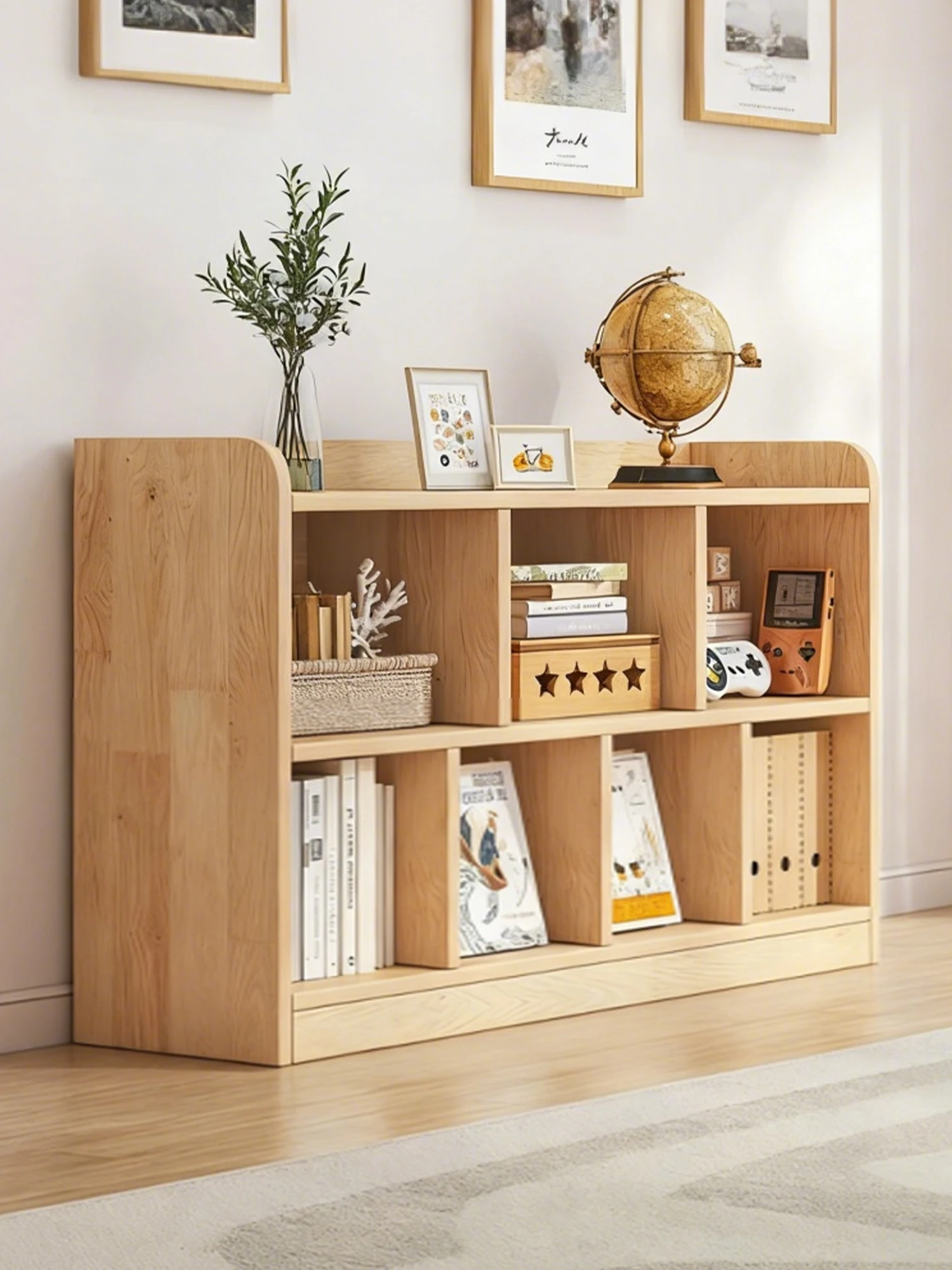 Stylish Solid Wood Bookshelf for Kids - Minimalist Floor Storage Unit with Cubes for Student Home Use, Perfect for Reading Nooks and Window Sills