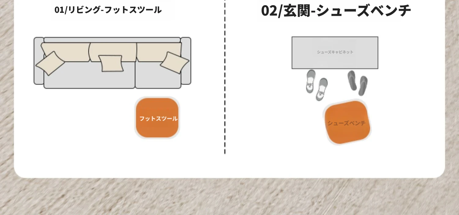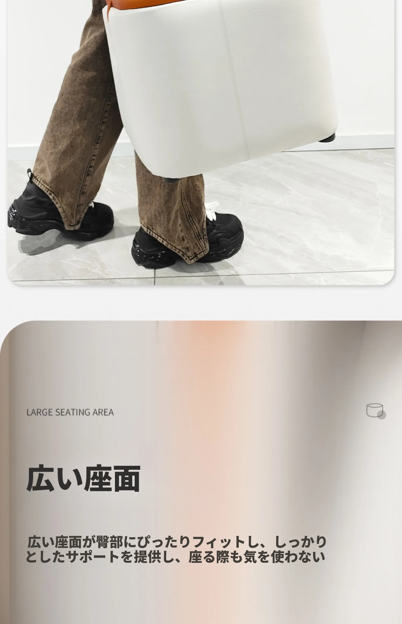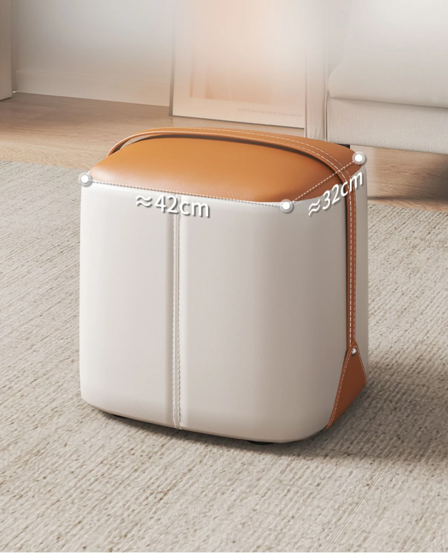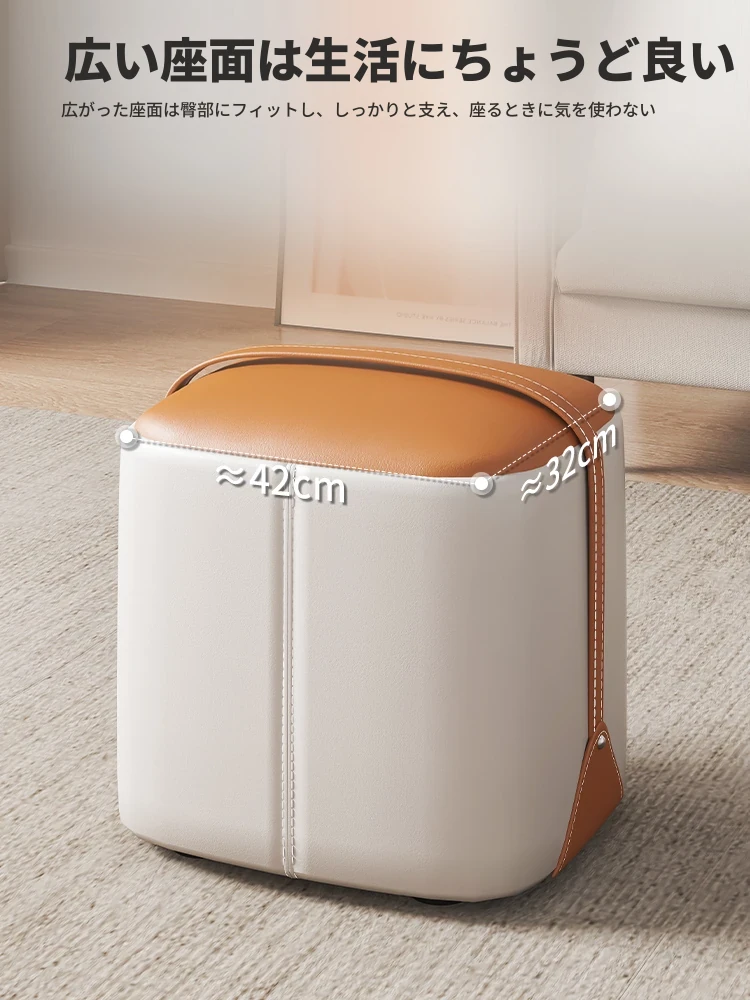 【大きなレザーオットマン/快適な靴替え用ベンチ】オレンジ+シルバーグレー