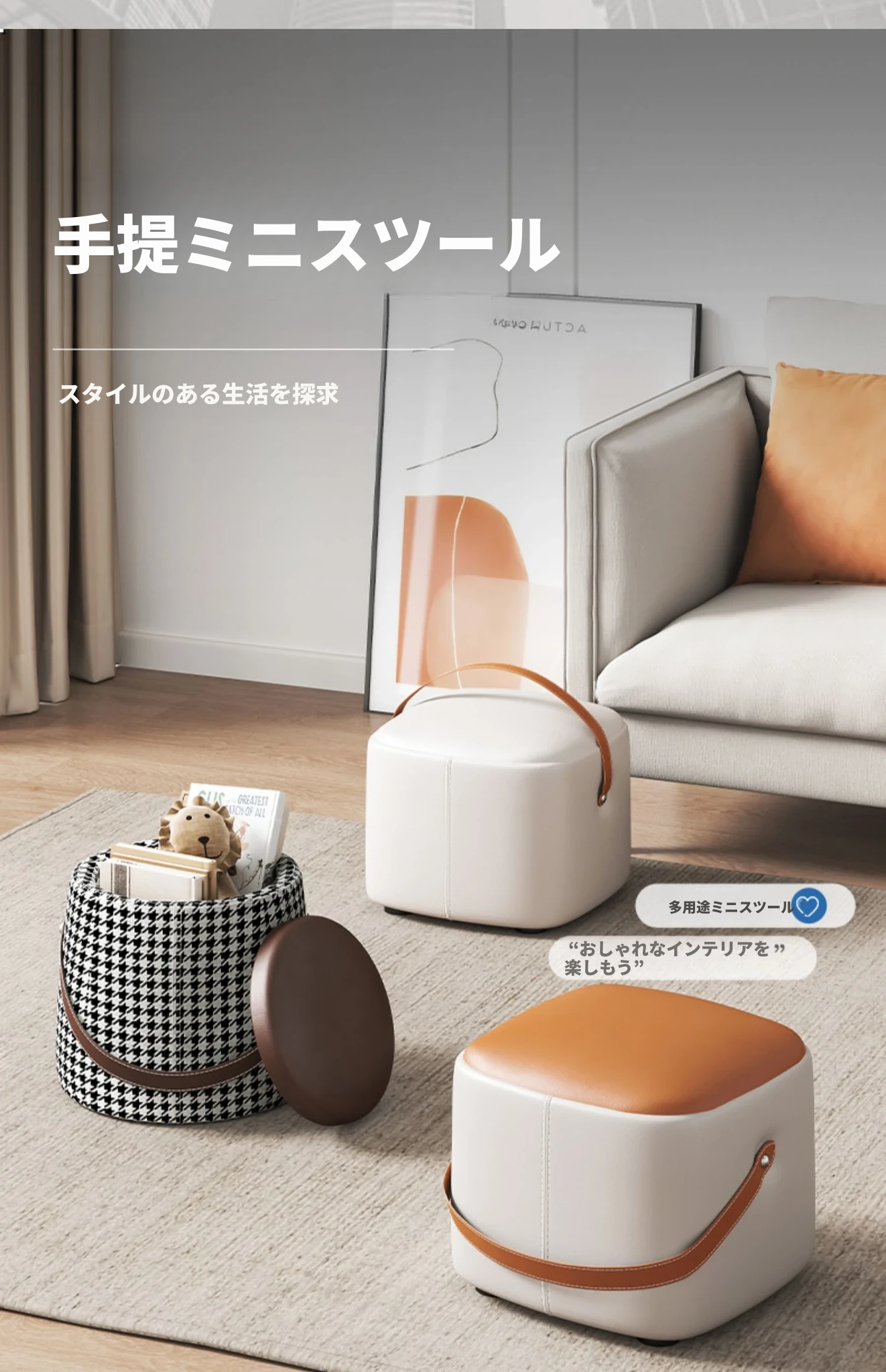 北欧風ミニスツール - 家庭用持ち運び簡易スツール、玄関での靴替えやソファのサブテーブルに最適!シンプルなデザインで収納もできる多機能スツール。おしゃれな空間を演出します!