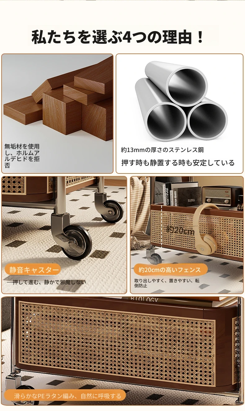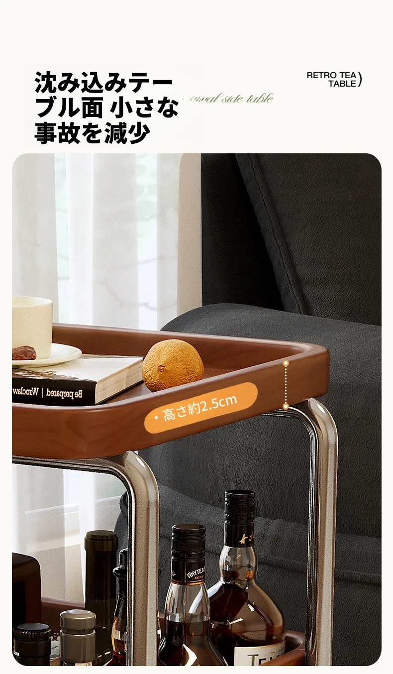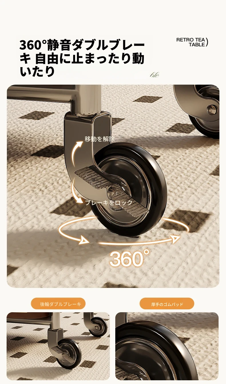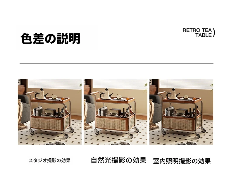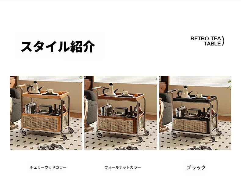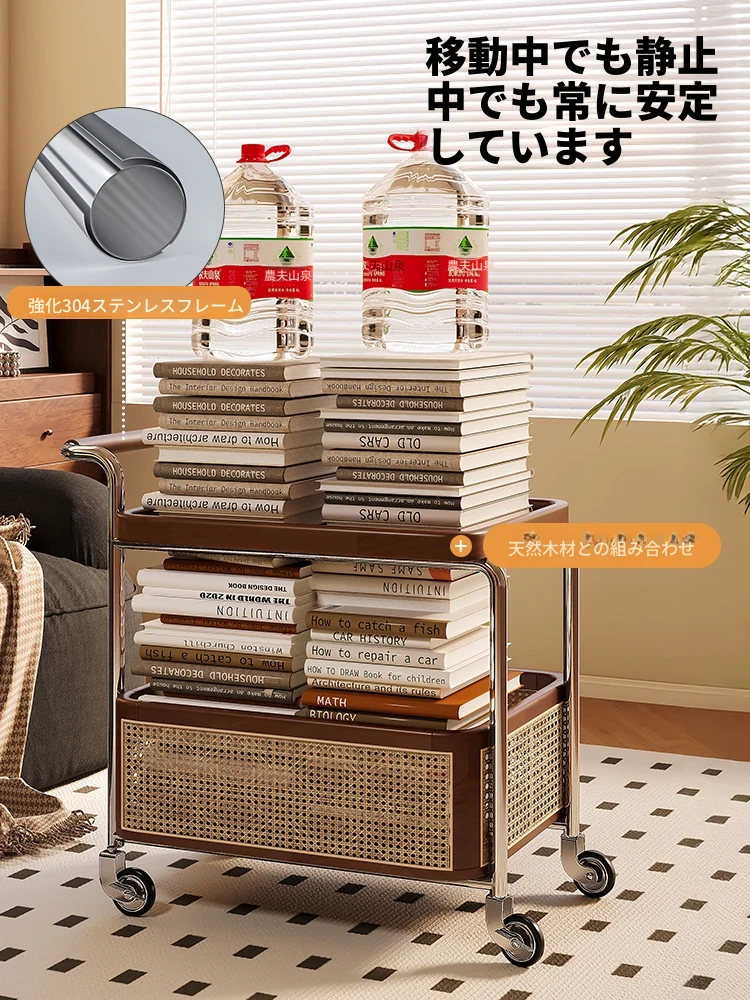 アンティーク風の無垢材移動式キャビネット - リビングやベッドサイドに最適な小型サイドテーブル、コンパクトなダイニングカーとしても活躍!あなたの生活空間をおしゃれに演出します。