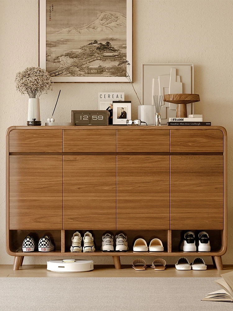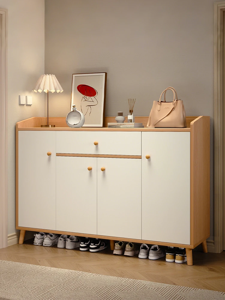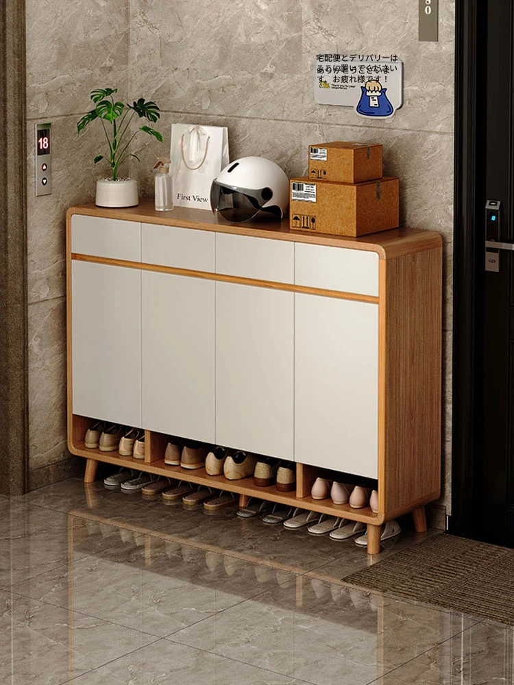 2025年新作!実木製シューズキャビネット - おしゃれな玄関用収納、エレベーター前にもぴったり!壁に寄せて置けるスリムデザインで、廊下や階段にも最適なシンプルな靴ラック。あなたの生活空間を美しく整理整頓!