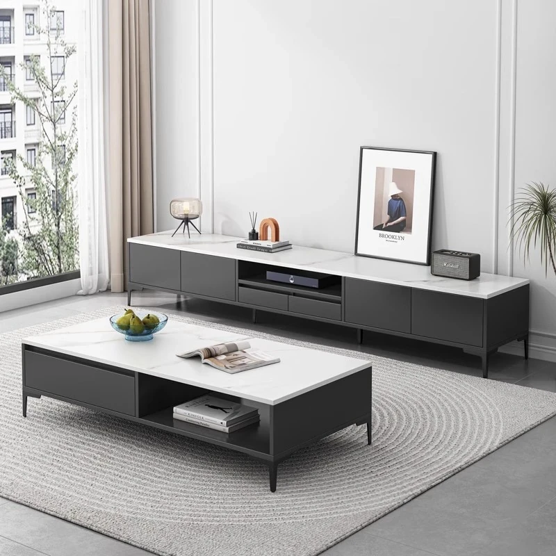 2023年新作!モダンでシンプルなイタリアンスタイルのテレビキャビネット - コンパクトなスペースにぴったりな収納力抜群のローテーブルとセットで、洗練された生活空間を演出します!