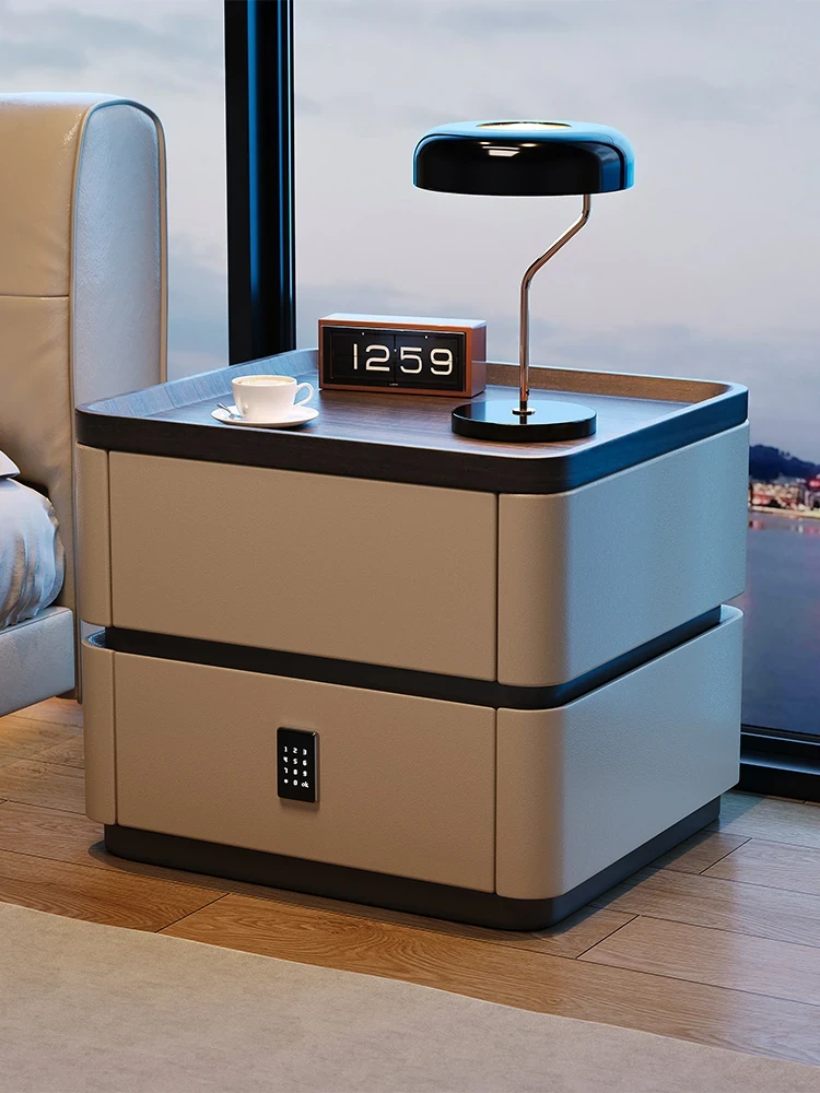 鍵付きモダンベッドサイドキャビネット - シンプルで高級感あふれる天然木製収納ボックス。寝室に最適な収納スペースを提供し、スタイリッシュなインテリアを演出します。