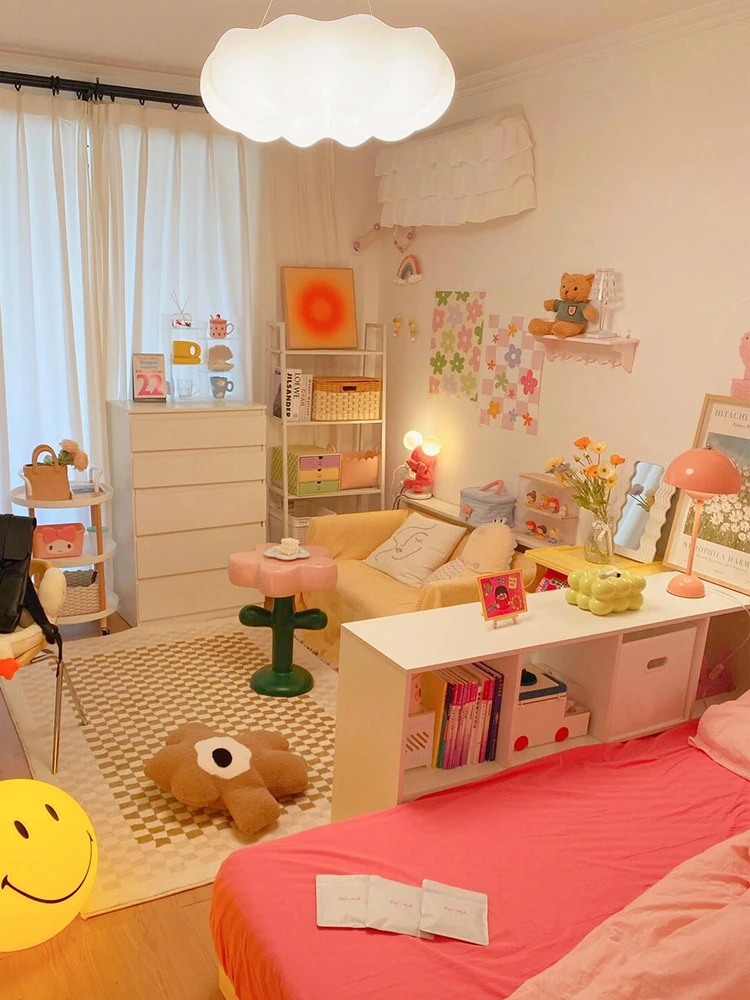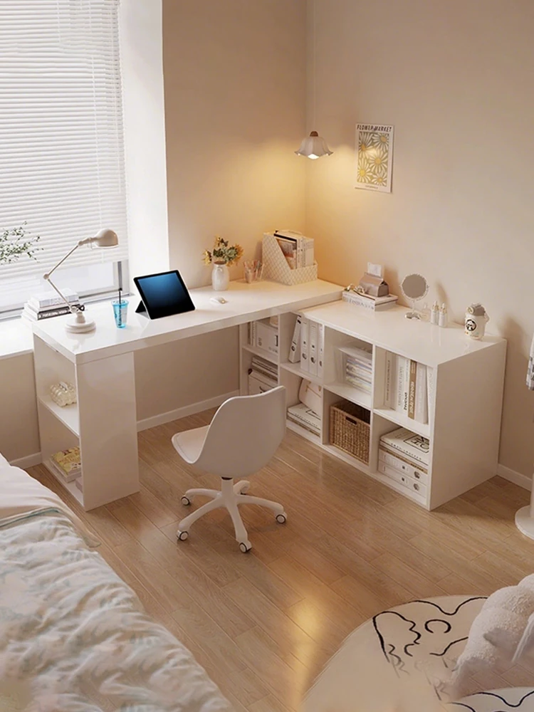 角度を生かした多機能デスク!女の子の寝室にぴったりな書斎兼用化粧台。伸縮可能なL字型デザインで、限られたスペースを有効活用。書斎としても、メイク台としても大活躍!