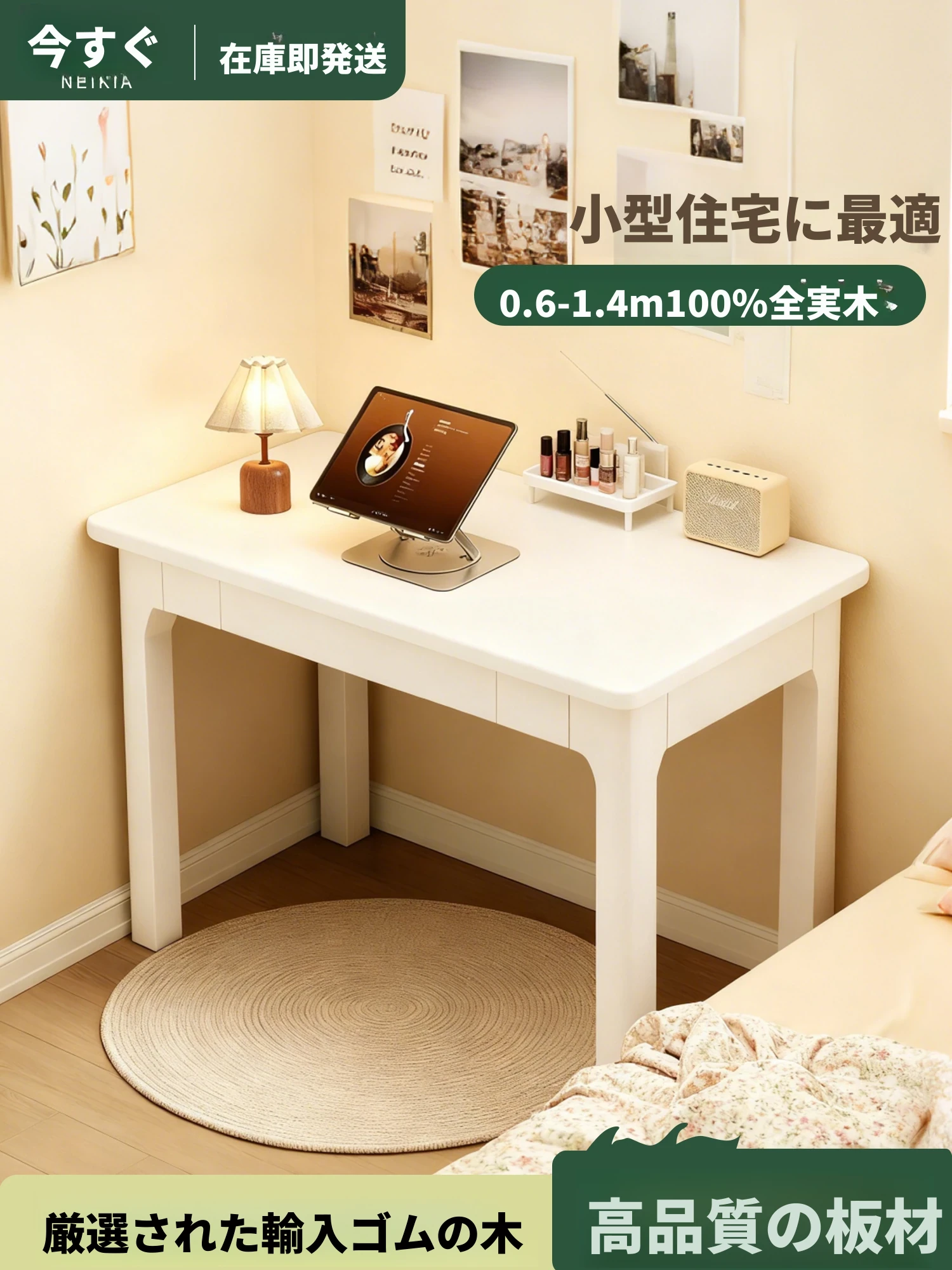 全実木製の学生用学習デスク - ホワイトクリームカラーの化粧台、寝室やオフィスに最適なデスクトップコンピューターデスク!シンプルでスタイリッシュなデザイン、快適な作業環境を提供します。