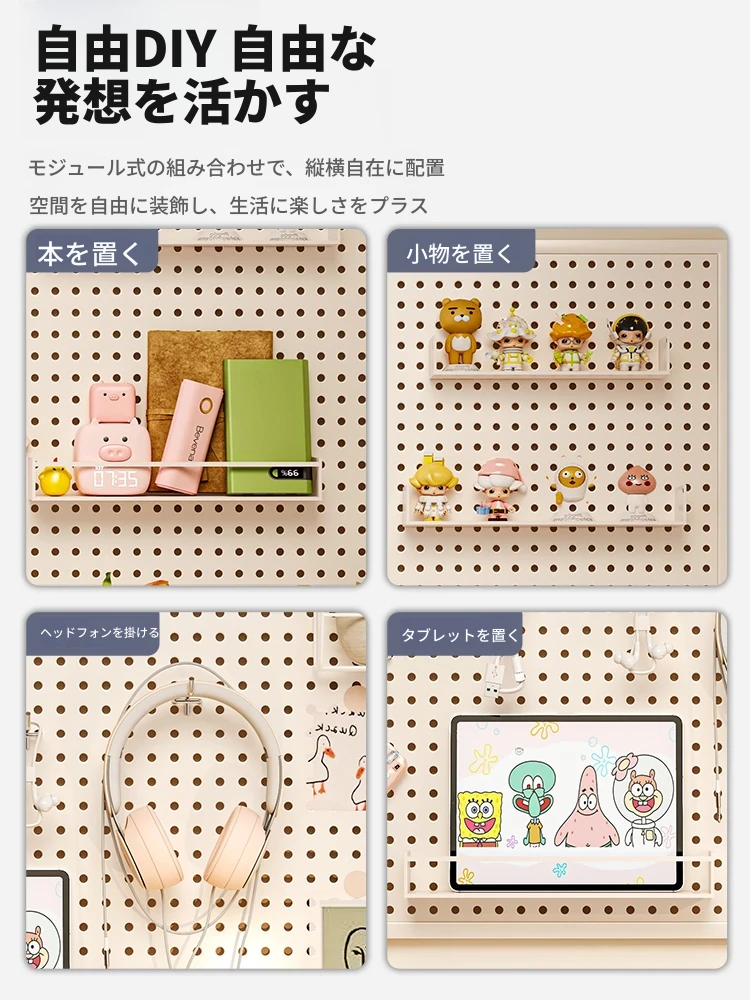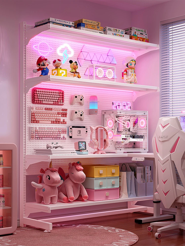 五金製の穴あきボード収納ラック - 地面に置ける可愛いデザインのゲーミングルーム装飾!ネイルなしで簡単取り付け、デスク周りをスッキリ整理整頓。あなたのスタイルを引き立てる必需品!