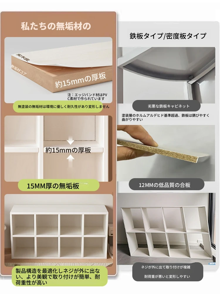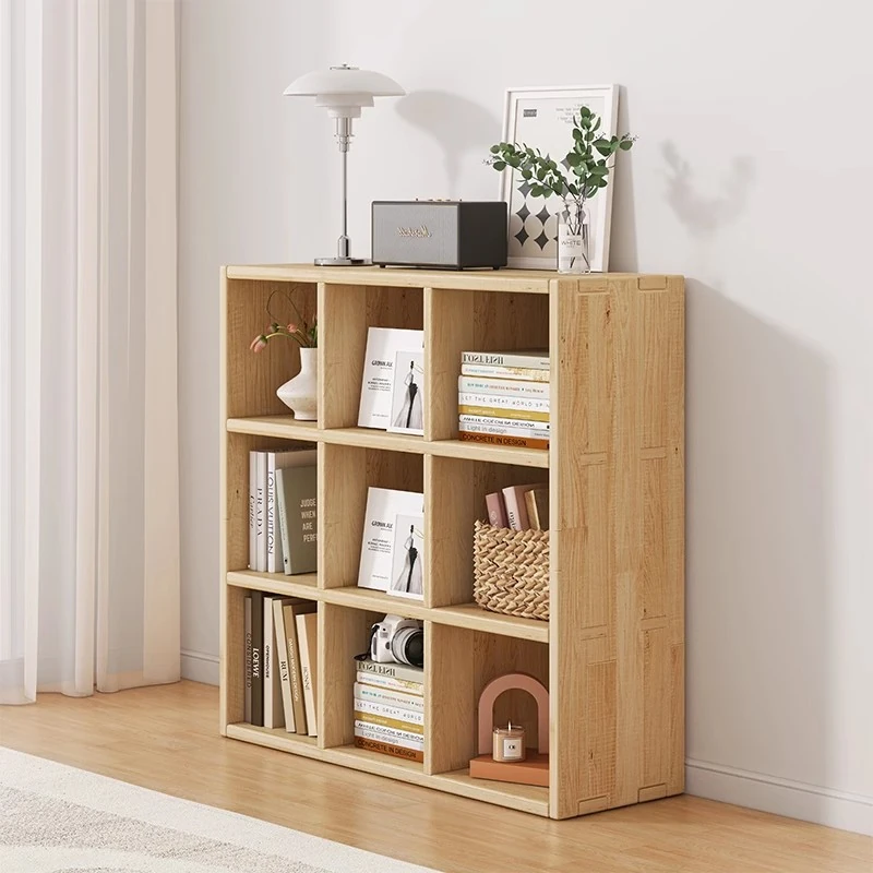 無垢材の松木製収納キャビネット - おしゃれな9マスデザインの本棚&収納ラック、家庭用の低めの書棚でスペースを有効活用!8つの収納ボックスで整理整頓も簡単。あなたの部屋をスタイリッシュに変身させるアイテムです!