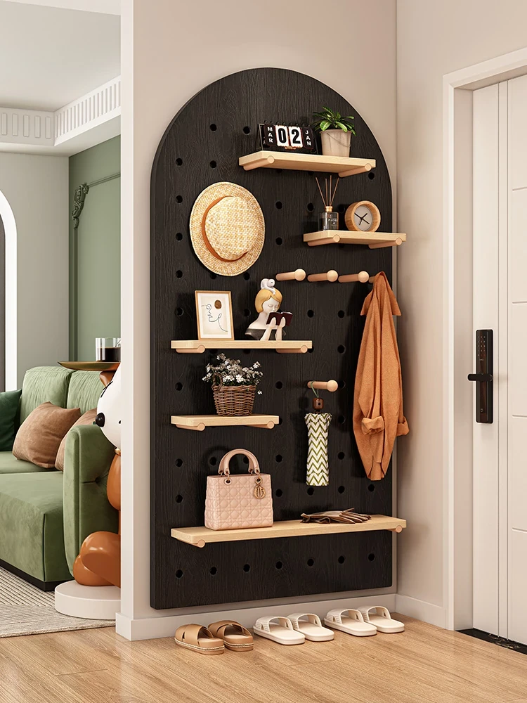 金属製ディスプレイボード - 玄関をスタイリッシュに!壁面収納ラック、万能フック付きでおしゃれに整理整頓。お客様のアイデアを形にする、機能性とデザインを兼ね備えた必須アイテム!