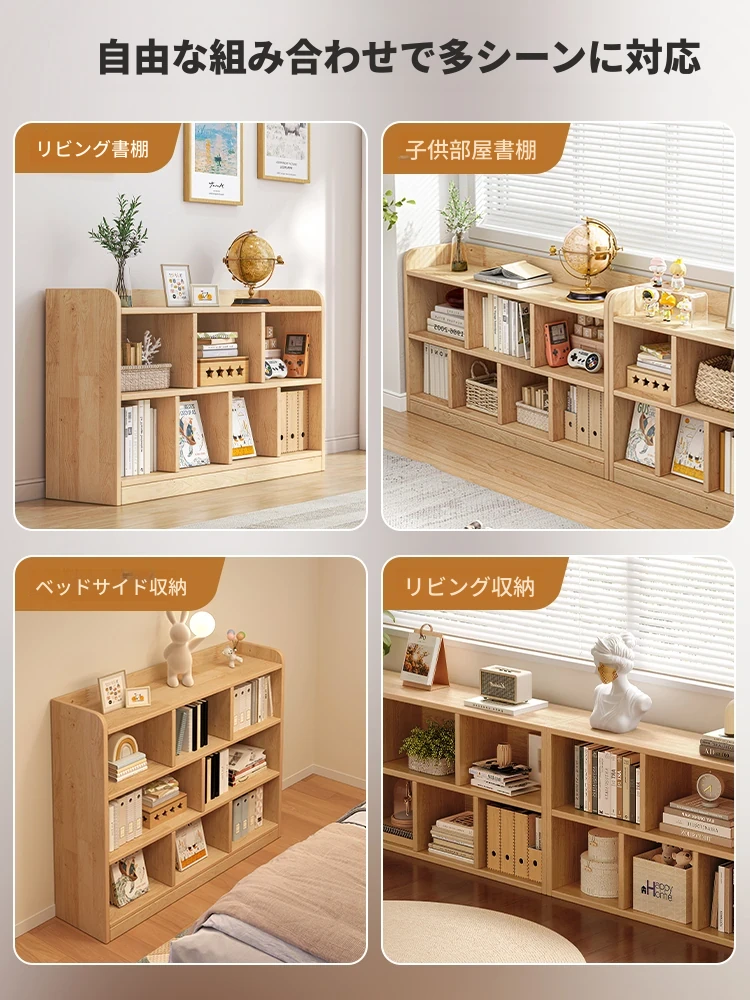 子供用の天然木製フロア書棚 - スペースを有効活用できる多層収納ラック!壁に寄せて使える便利なデザイン、教科書やおもちゃもすっきり収納。学習環境を整え、成長をサポートします!