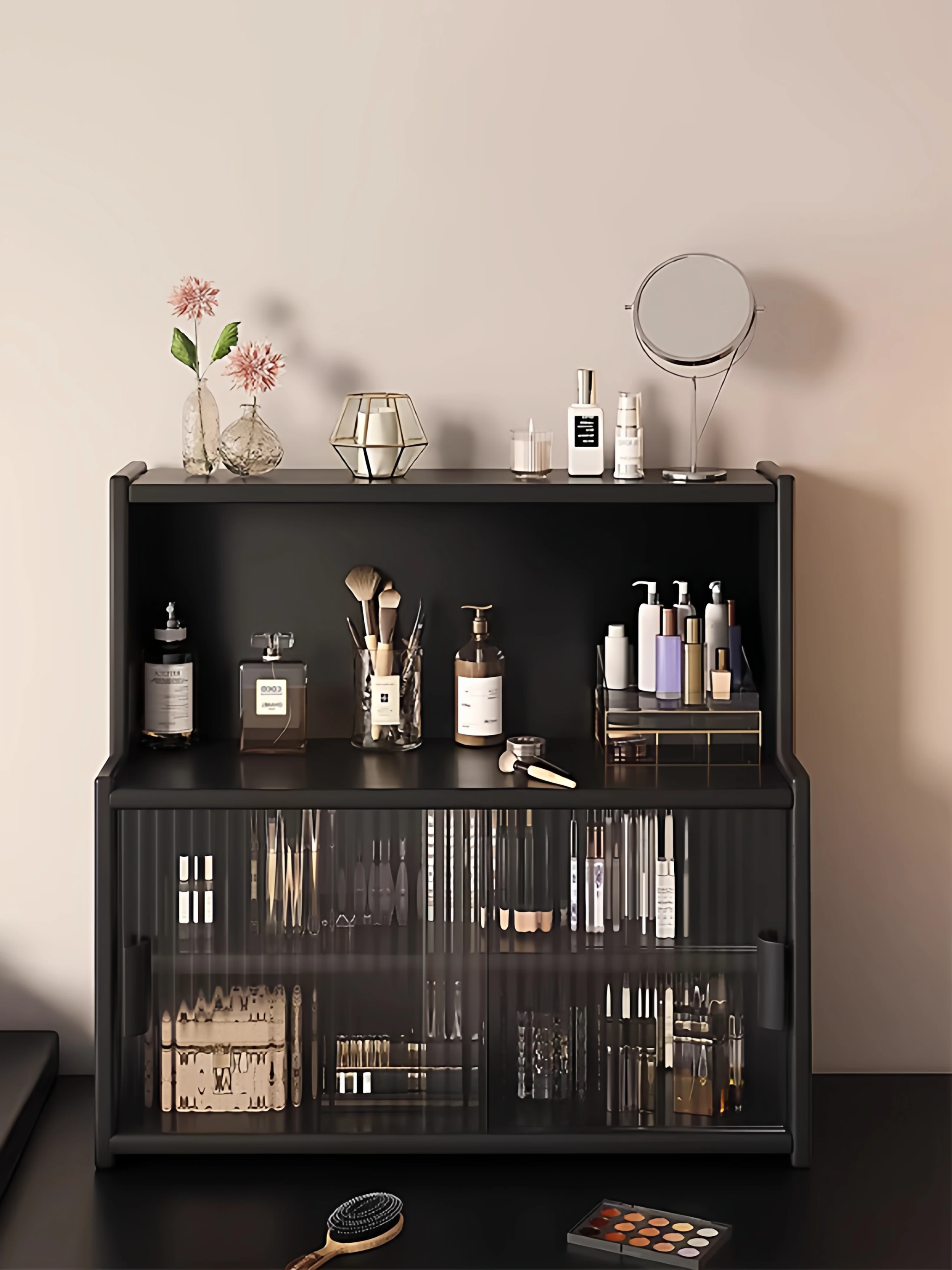 デスクトップ化粧品収納ラック - 天然木製のシンプルなデザイン、女性のスキンケアアイテムを美しく整理!防塵カバー付きでホコリから守り、使いやすさ抜群の収納ボックス。おしゃれなインテリアとしても最適!