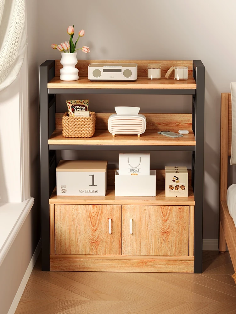 天然木製ベッドサイドキャビネット|半囲い設計でスタイリッシュに収納|寝室やリビングに最適な収納棚|本や小物をスマートに収納できる便利なアイテム!