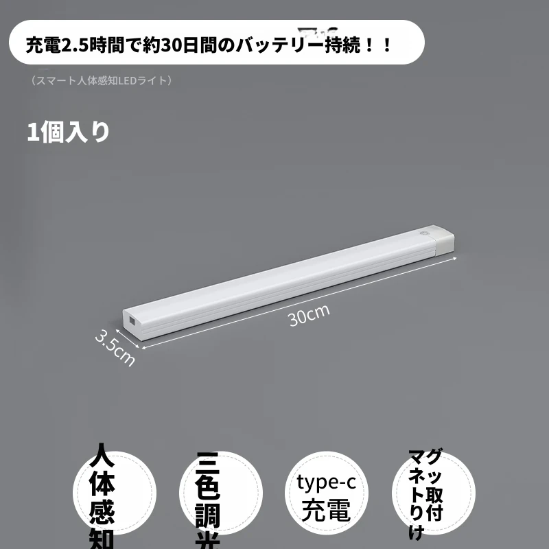 充電式ワイヤレス人体感知LEDスマートライトテープ - 書棚、キャビネット、クローゼット、シューキャビネットに最適な装飾雰囲気灯!自動点灯で省エネ、心地よい空間を演出します。