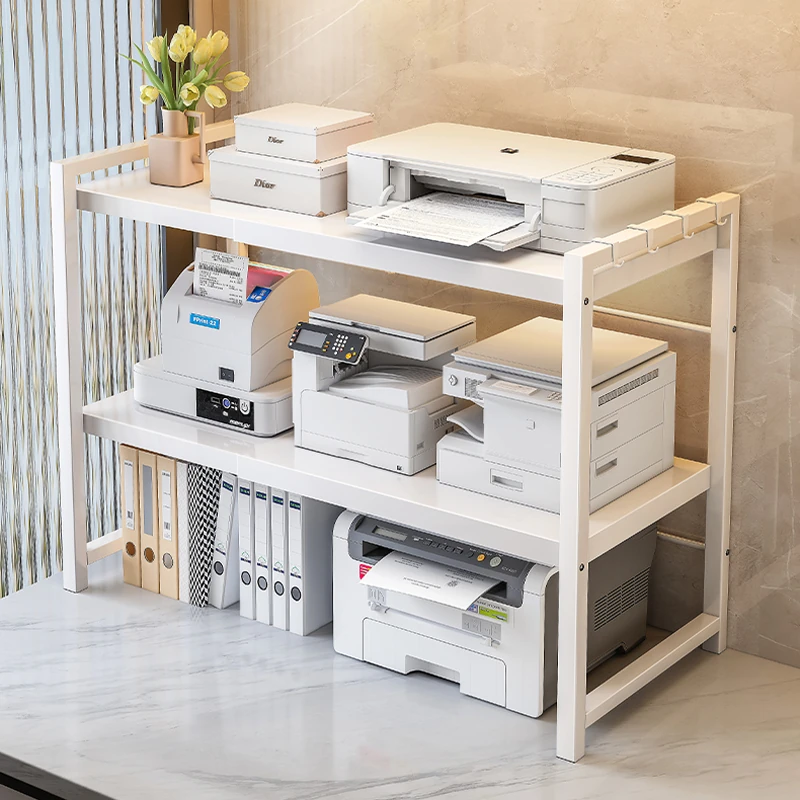 伸縮可能なデスクトッププリンタースタンド - 多段収納ラックでオフィスの書類をすっきり整理!デスク上のスペースを有効活用し、作業効率をアップさせる理想的なアイテムです。