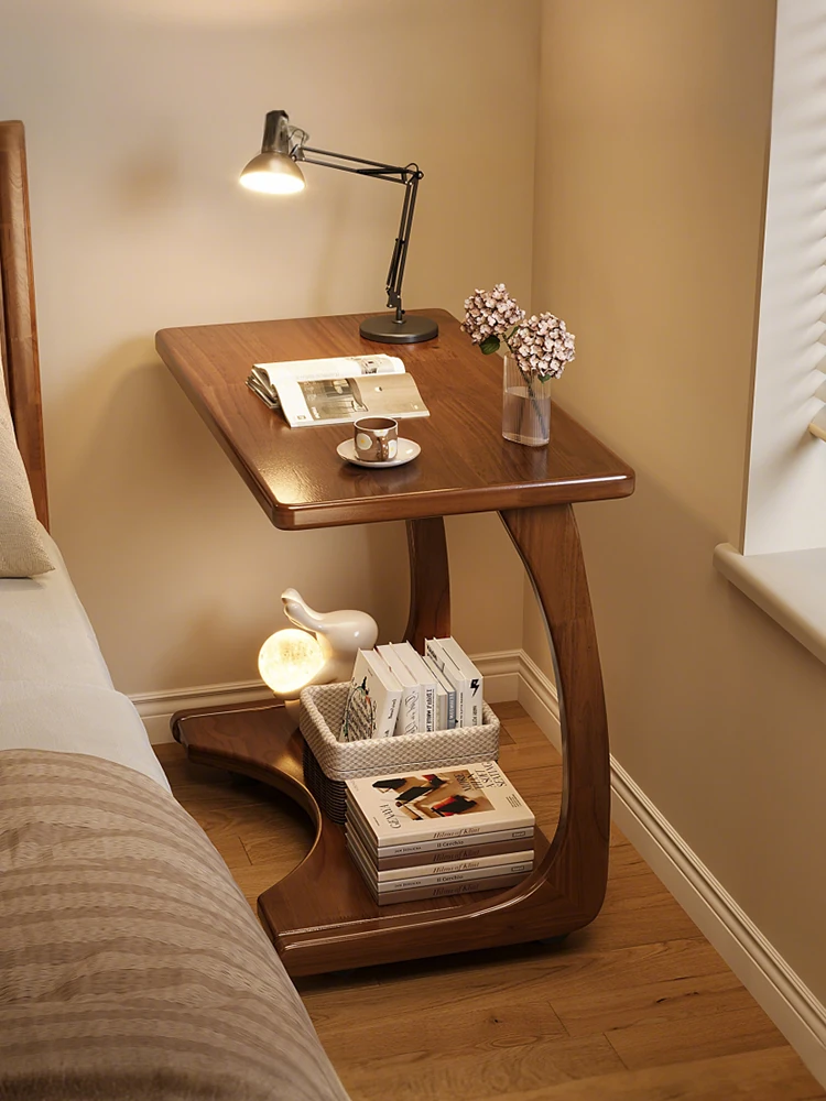 キャスター付きのC型小型テーブル!実木製のベッドサイドテーブル、リビングルームにぴったりの移動可能な収納ラック。ソファ横に最適なデザインで、便利さとスタイルを両立!