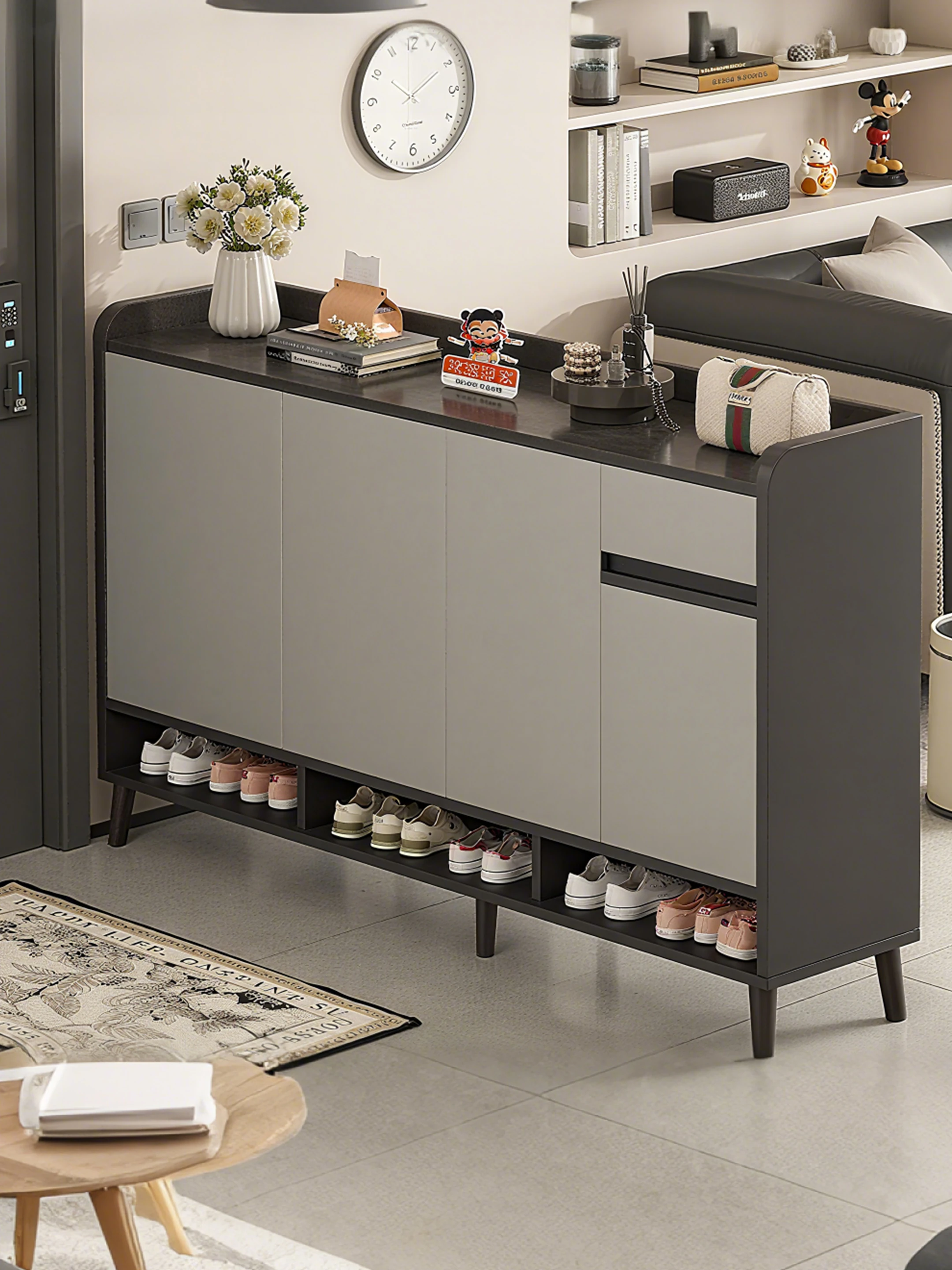新型高級室内用シューズラック!2025年最新モデル、入戸玄関用シューズキャビネット。壁に寄せて置ける収納力抜群の一体型デザインで、家の入り口をスタイリッシュに演出します。
