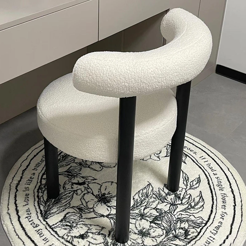 高級感溢れるウールフリースのドレッシングテーブル用化粧椅子、インスタ映え間違いなしの可愛いデザイン!女の子の寝室やネイルサロンにぴったりなコンパクトで快適な小型チェア。