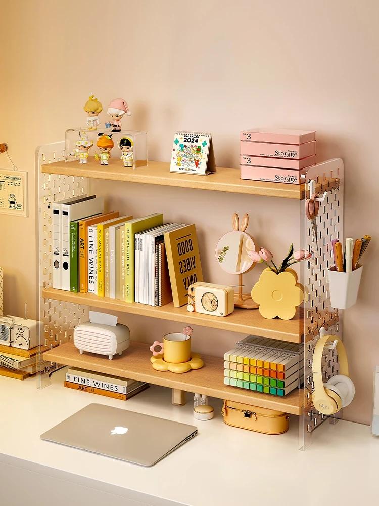 デスク上の整理整頓を実現!アクリル製の多段収納ラック - 穴あきボードで本や文房具をスッキリ整理!オフィスや書斎に最適なデスク上本棚。シンプルでスタイリッシュなデザインで、作業効率UP!