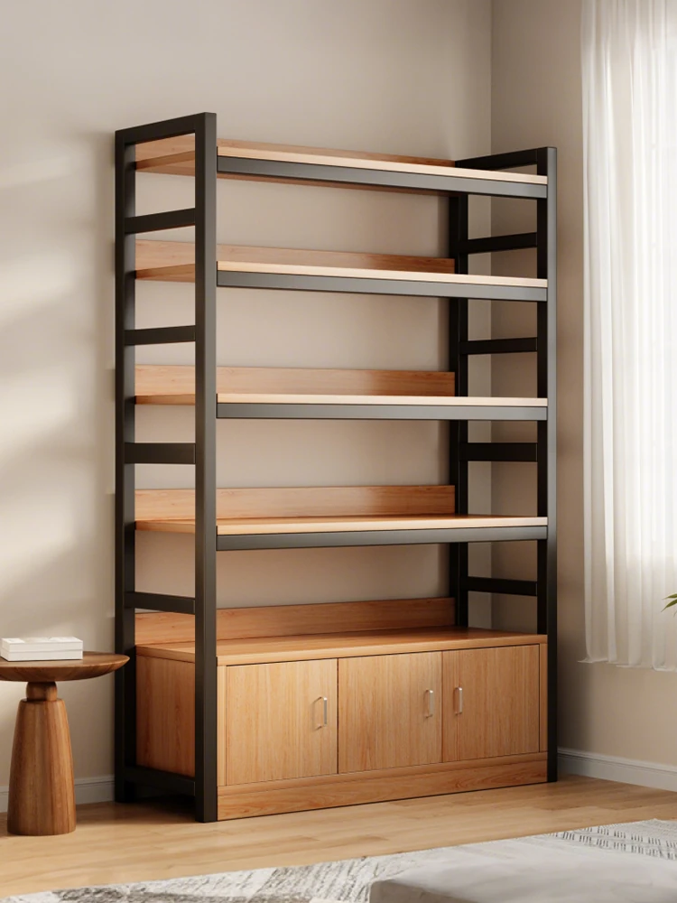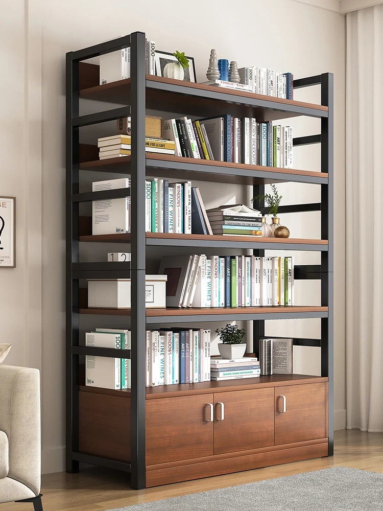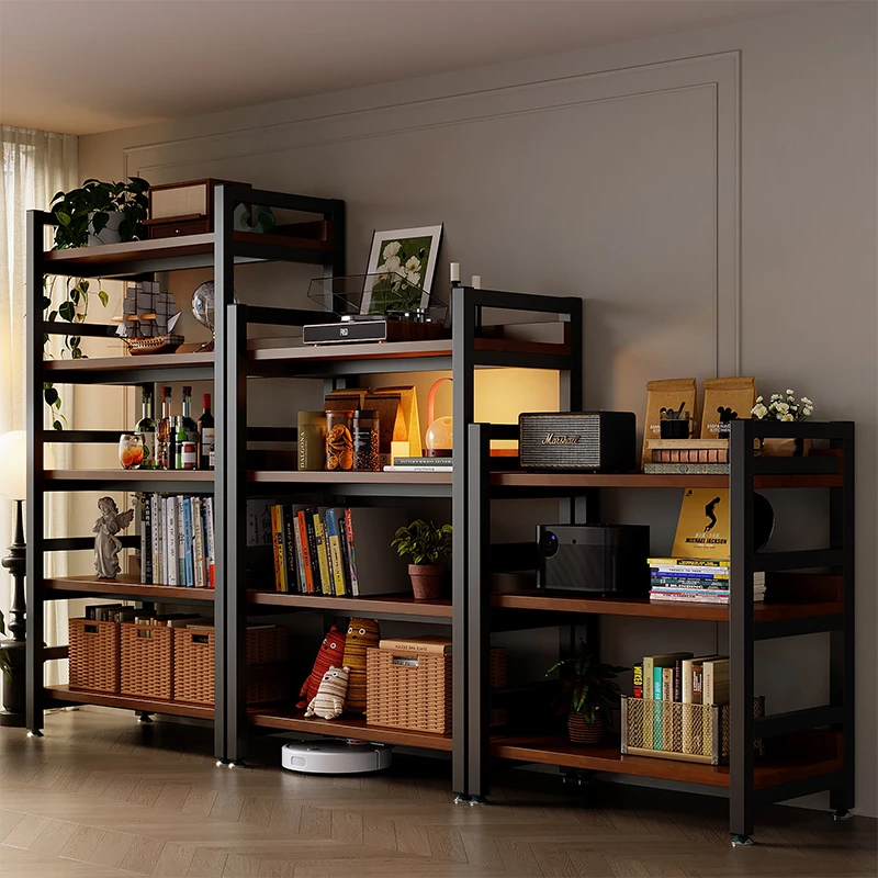 スタイリッシュなスチールと木製のフロア書棚 - 多層収納ラック、図書館や家庭に最適な収納キャビネット。あなたの空間を美しく整理整頓!