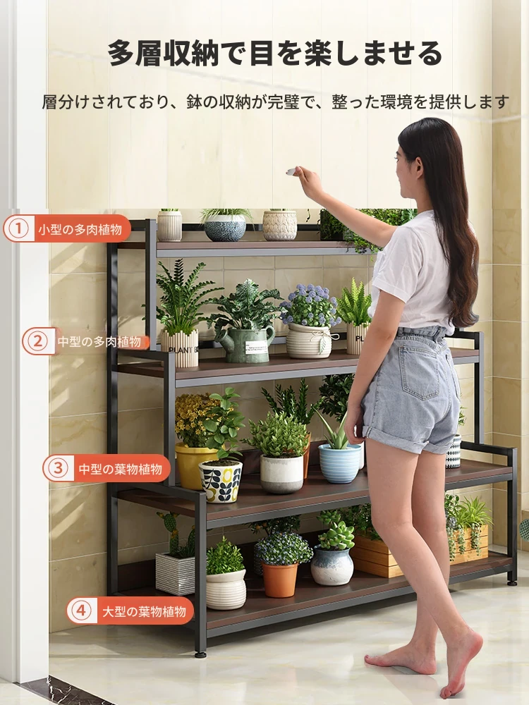 アイアン製フラワースタンド 薄型置物ラック バルコニー用 おしゃれな新作 花ラック リビングに最適なフロアスタンド 多層インドアプランターラック