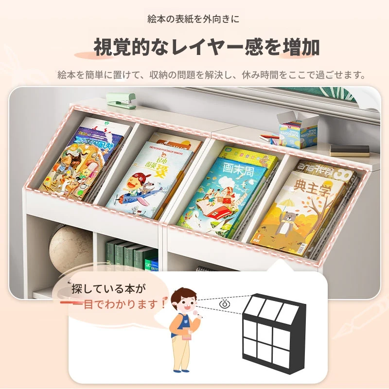 全実木製幼稚園用書棚収納ボックス 壁掛け式収納キャビネット 子供用本棚 スタイリッシュなデザインでお部屋をスッキリ整理!地面に置ける収納キャビネットで、遊び場をもっと楽しく!