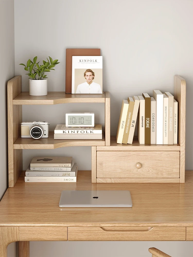 伸縮可能な実木製デスクトップ収納ラック - オフィスデスクや書斎に最適!コンパクトなコーナー用多機能棚で、使いやすさと美しさを両立。スペースを有効活用し、すっきりと整理整頓!